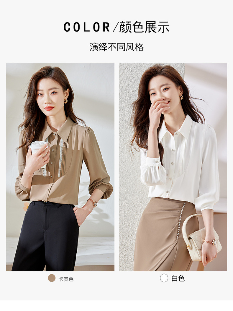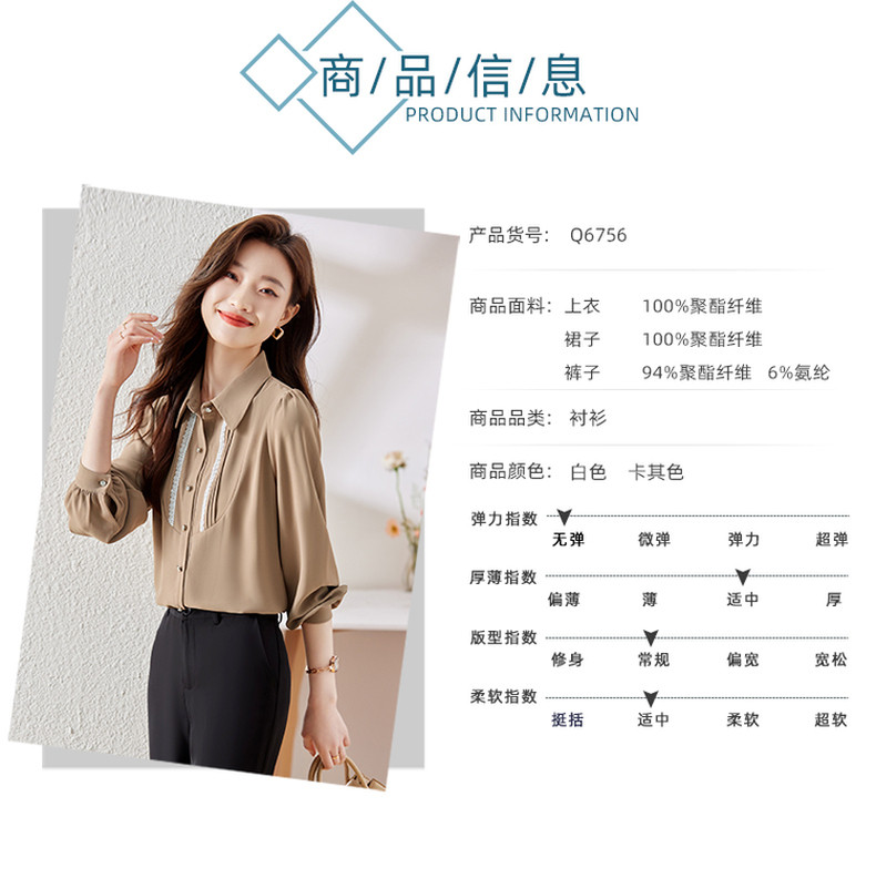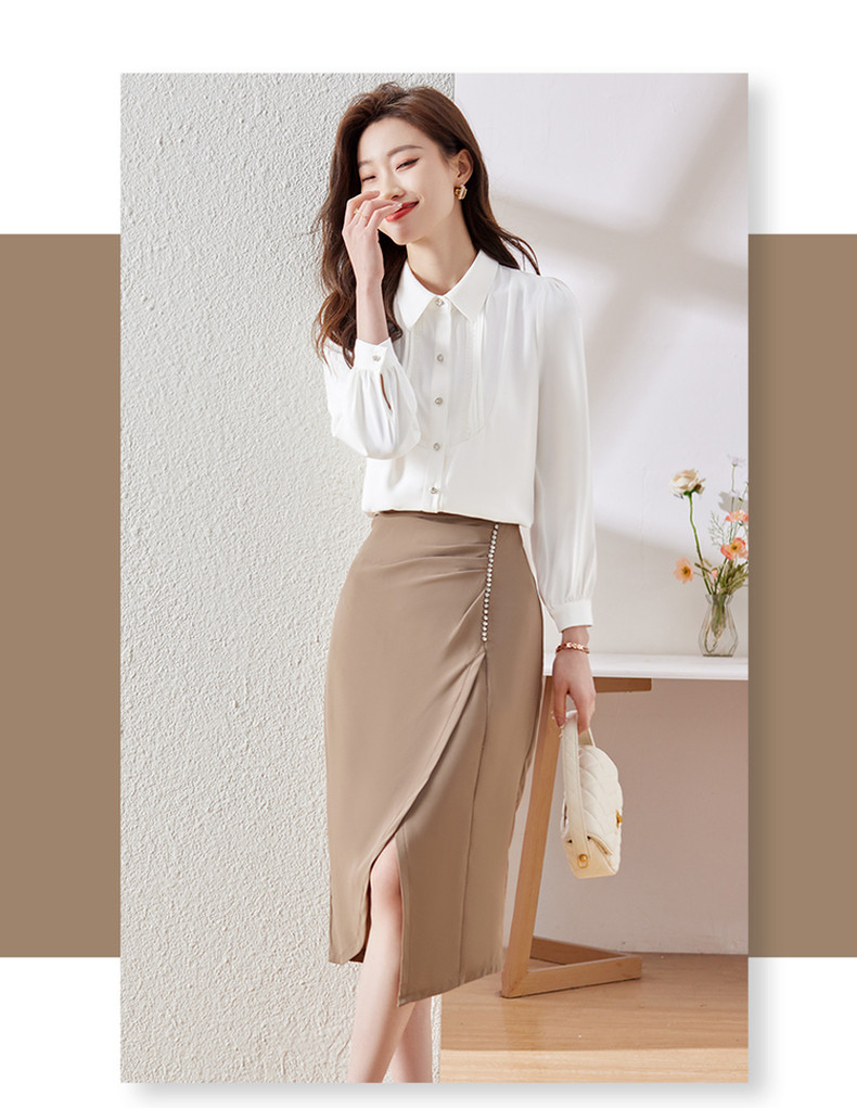 - 颜色:单件白色衬衫,单件卡其色衬衫,白色衬衫+咖啡色半身裙,卡其色衬衫+黑色休闲裤