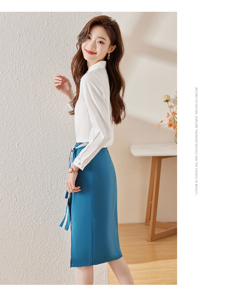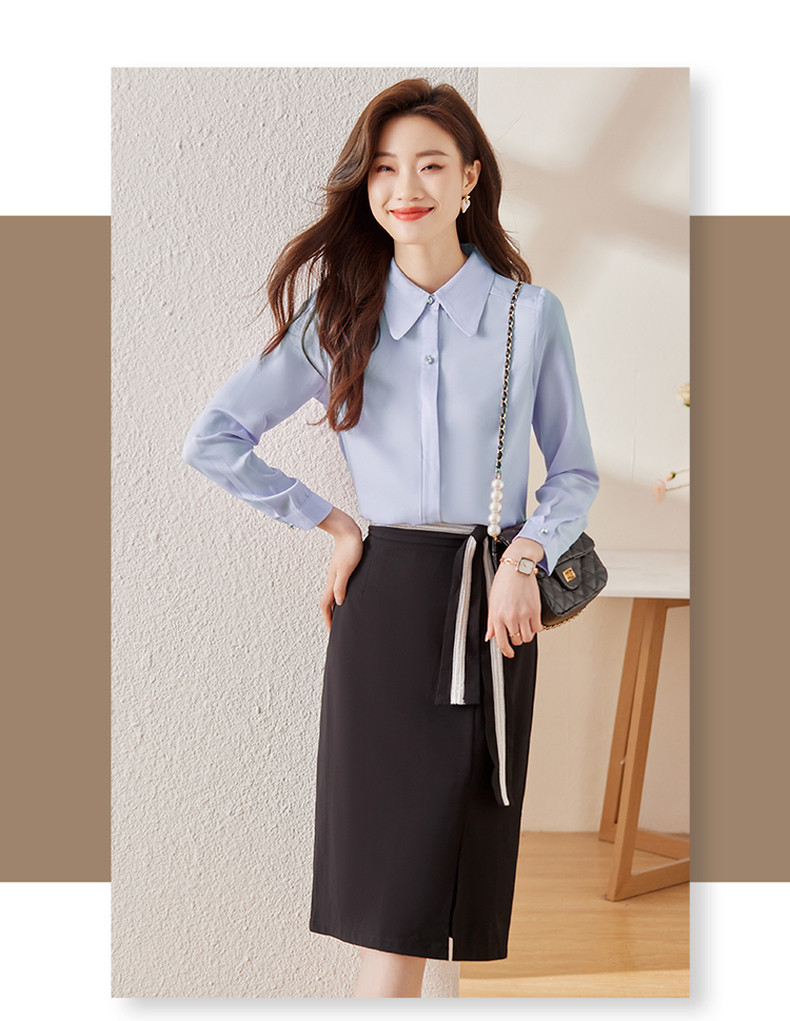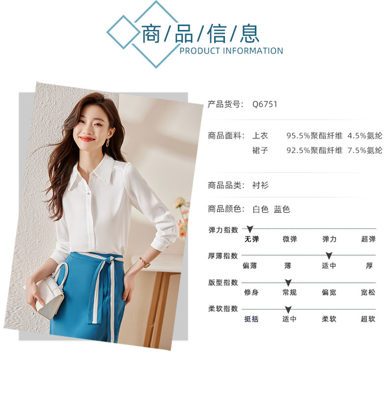- 颜色:单件白色衬衫,单件蓝色衬衫,白色衬衫+蓝色半身裙,蓝色衬衫+黑色半身裙