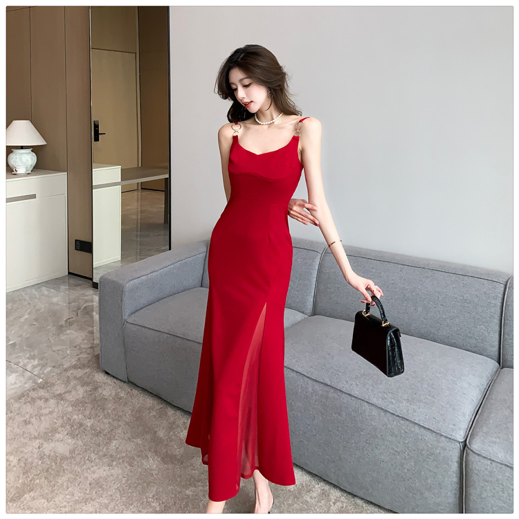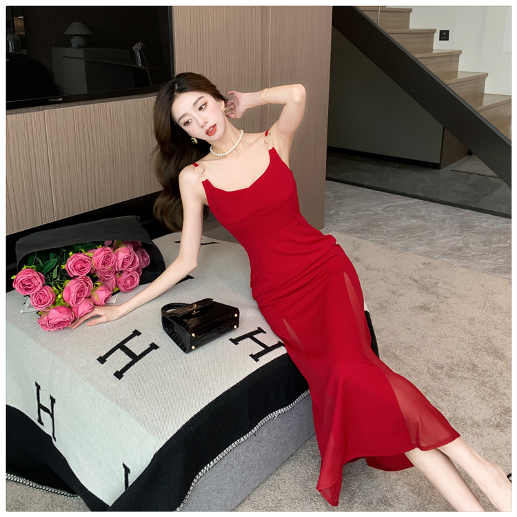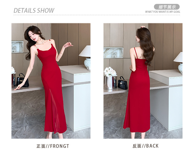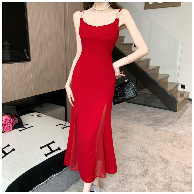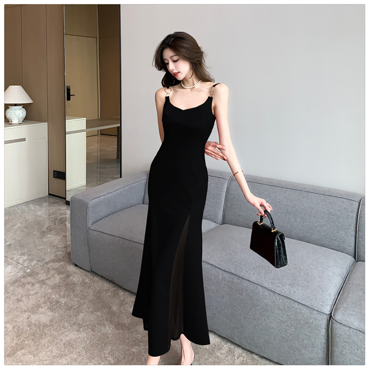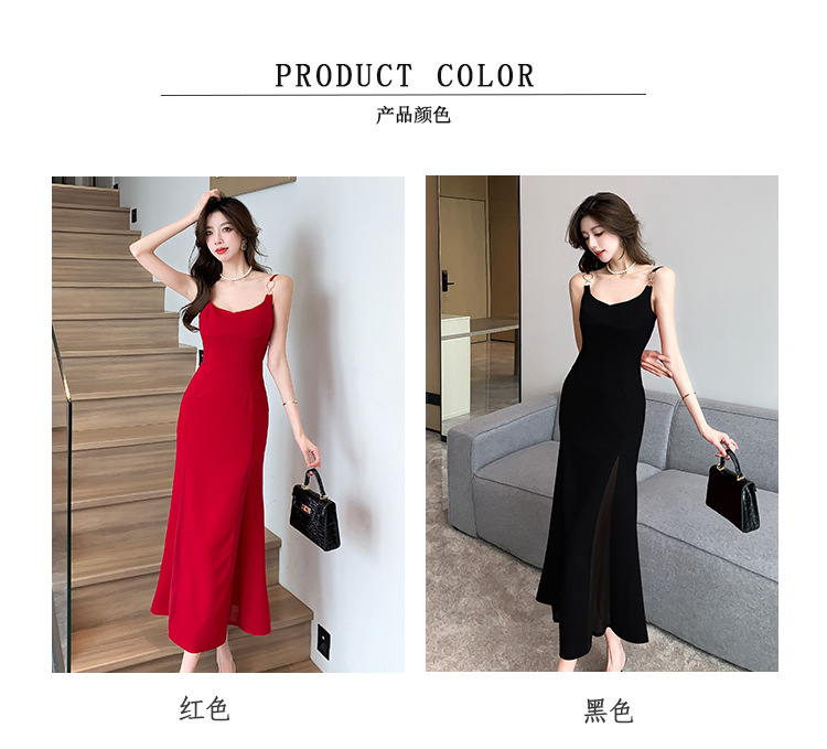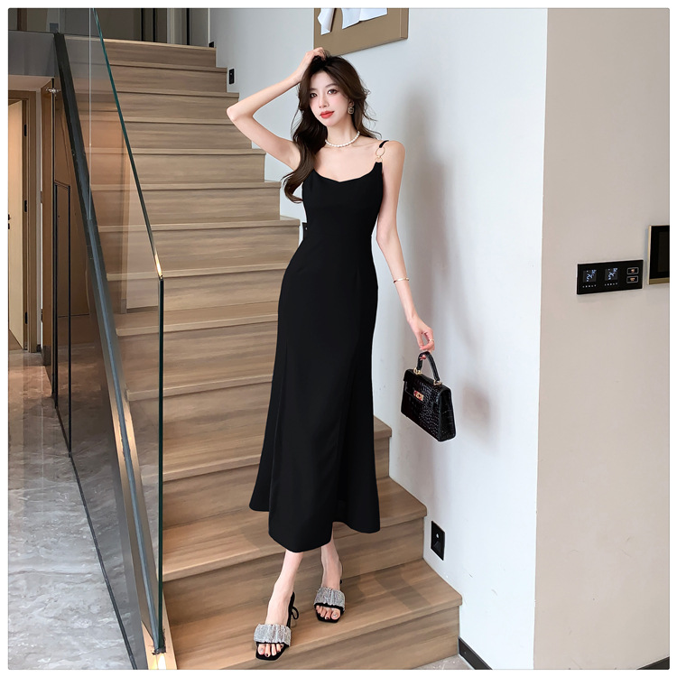 S-7100# 茶歇法式吊带连衣裙2025夏季新款高级感气质时尚收腰显瘦鱼尾裙女