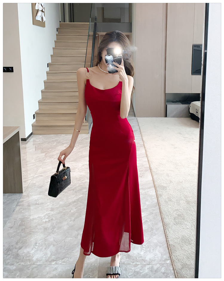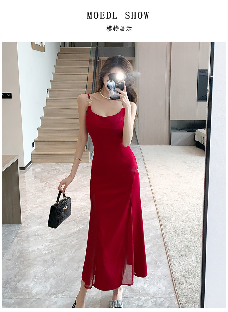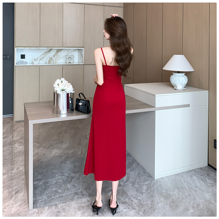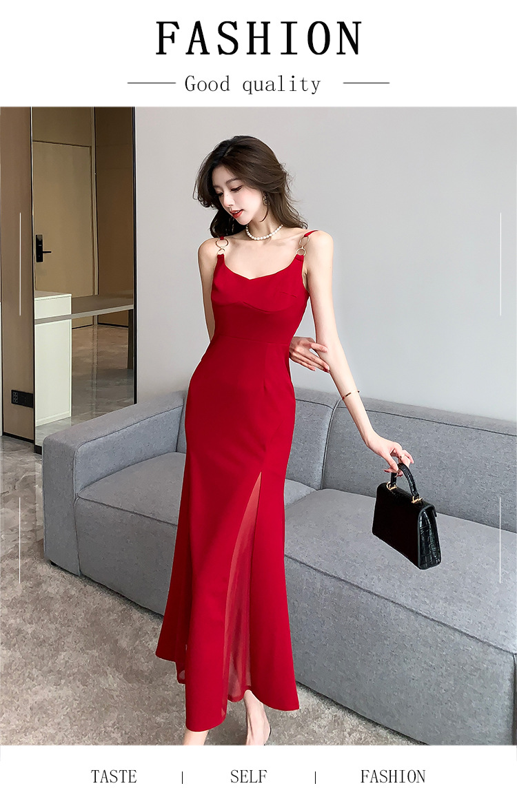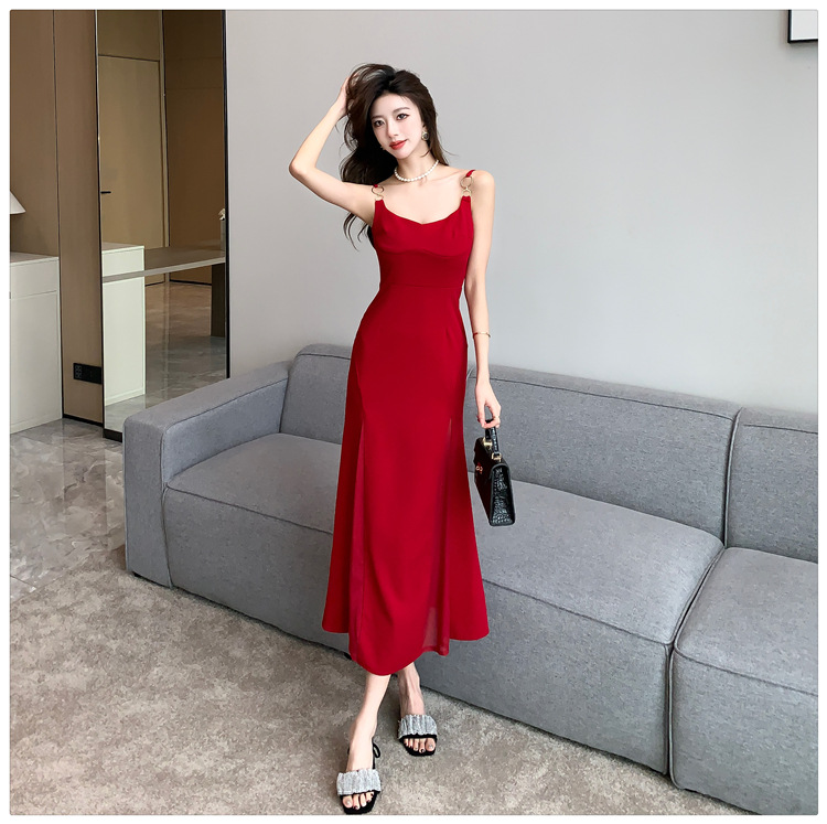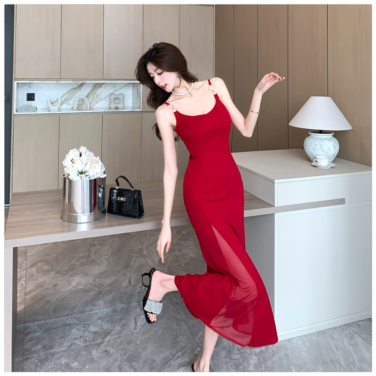 S-7100# 茶歇法式吊带连衣裙2025夏季新款高级感气质时尚收腰显瘦鱼尾裙女