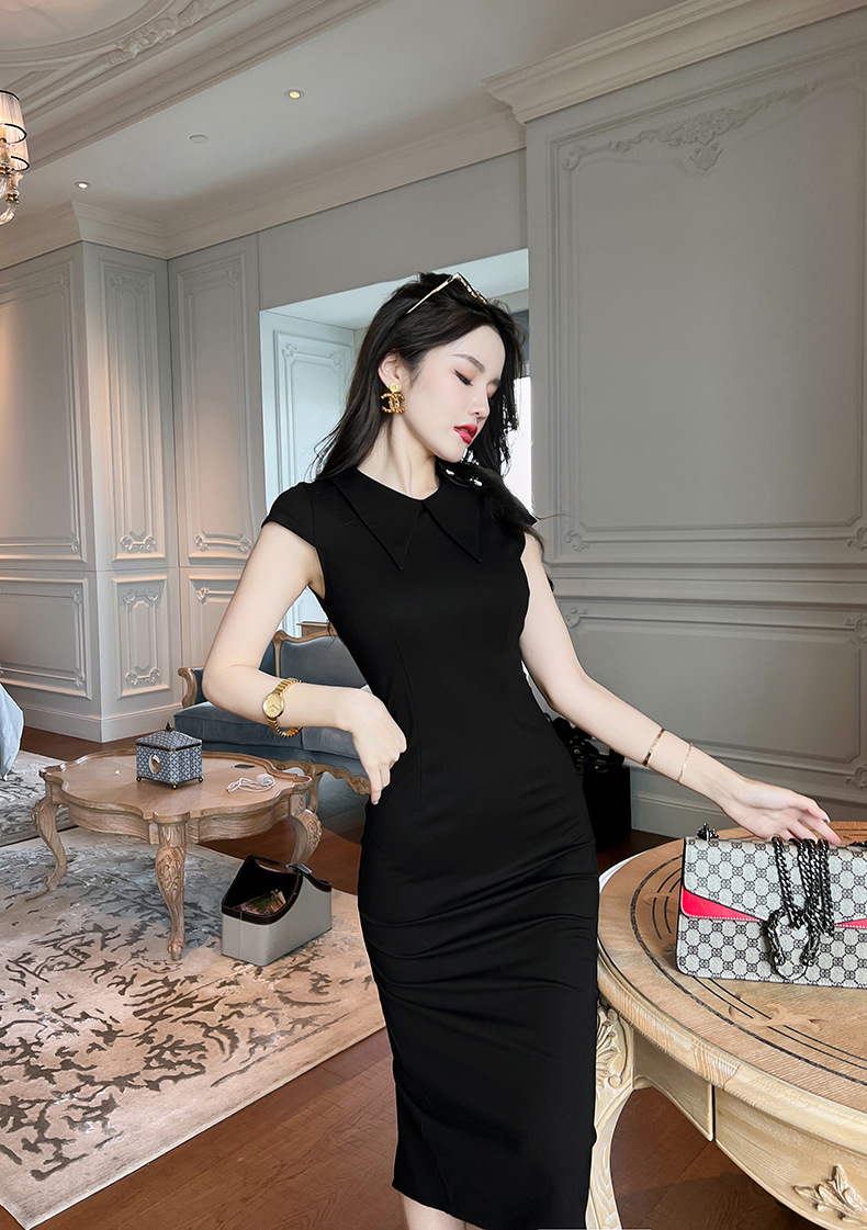 C-1015# 2022夏季新款女装新中式气质娃娃领减龄修身包臀开叉连衣裙潮5842