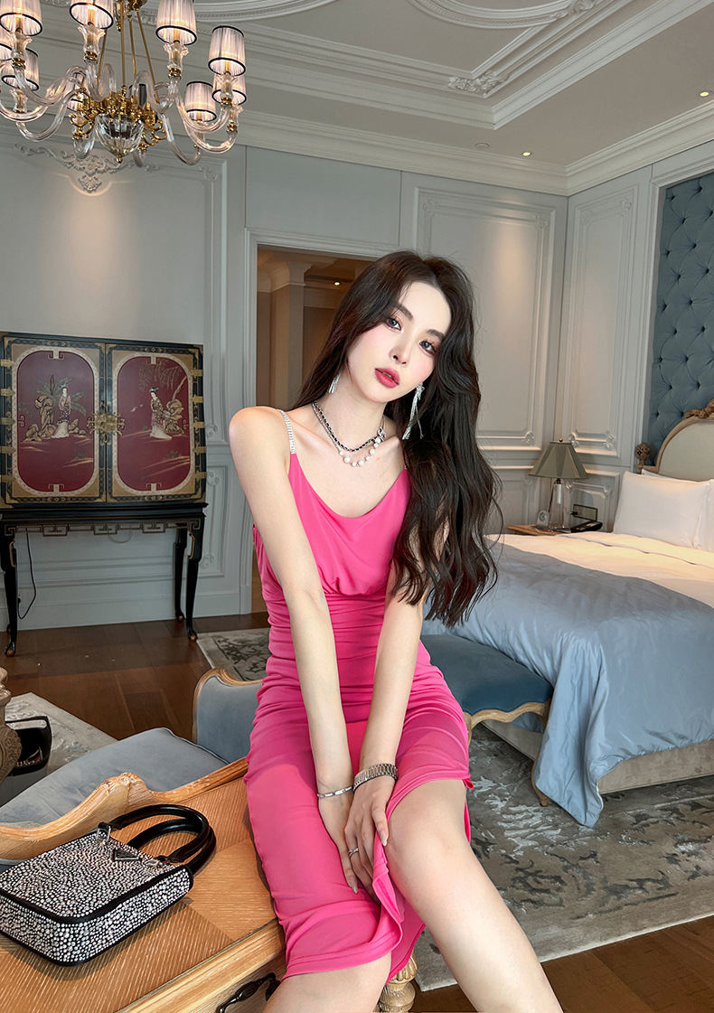 C-1088# 2022夏季新款女纯欲风性感收腰显瘦内搭长裙吊带修身连衣裙20080