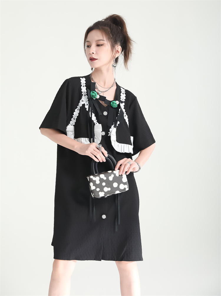 Z-1038# 中创日臻2022夏季新款黑色赫本风衬衫连衣裙 宽松显瘦法式裙子女