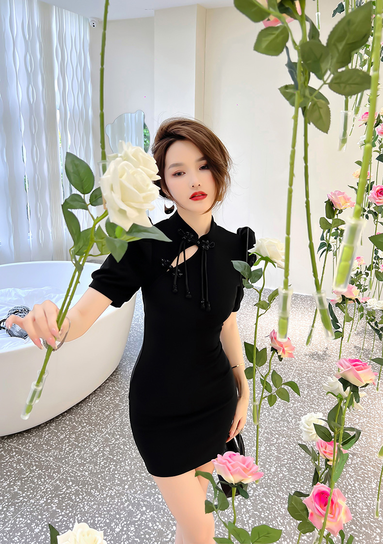 C-1097# 2022夏季新款女新中式改良少女旗袍裙小个子修身包臀连衣裙20140