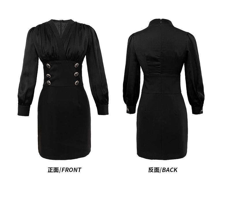 C-1195# 2022秋装新款通勤气质雪纺褶皱拼接修身连衣裙小个子包臀裙女4248