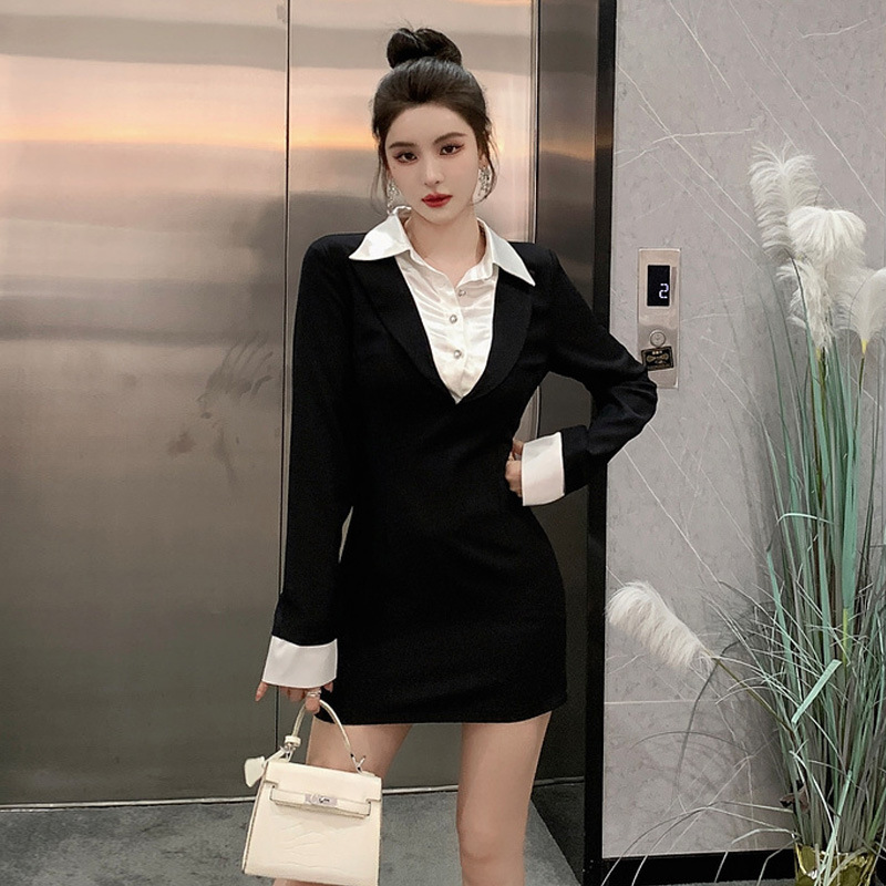 O-1469# 春季新款法式小众设计高级感赫本风内搭打底显瘦黑色长袖连衣裙女