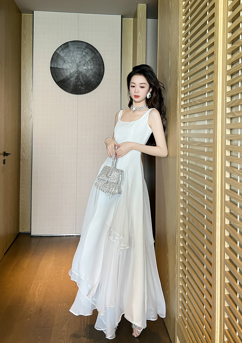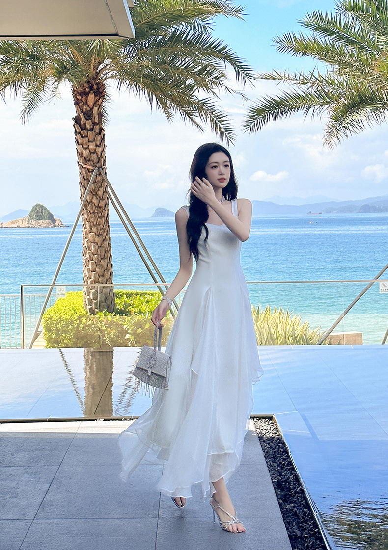 C-2491# 设计感不规则飘逸长裙夏季海边度假收腰法式无袖连衣裙仙女裙9612
