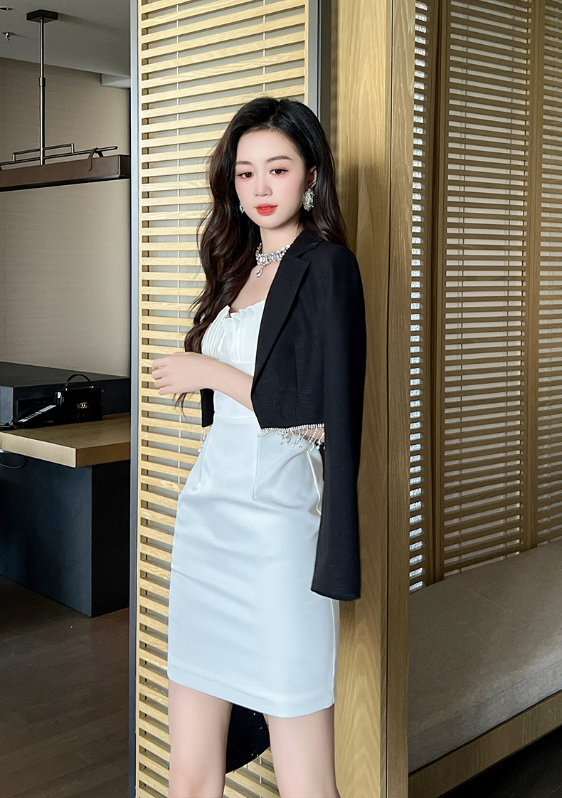 C-2508# 2023夏季新款女装百搭设计感镶钻流苏短款外套修身气质小西服9598