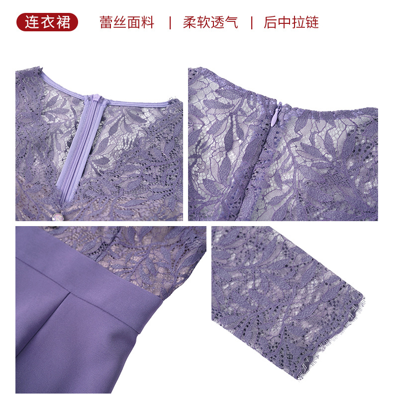 C-2876# 2023秋冬装新款女装法式V领蕾丝长袖拼接收腰紫色鱼尾连衣裙20845