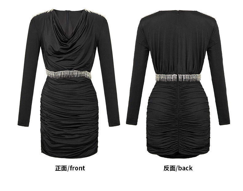 C-3022# 派对聚会礼服裙2023秋冬装新款重工镶钻荡领修身包臀连衣裙9689