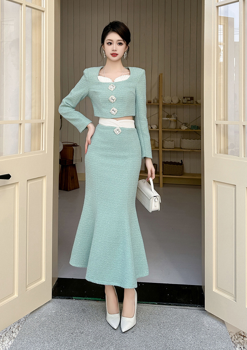 C-3040# 2023秋冬装新款女装法式高腰修身鱼尾长裙小香风包臀半身裙11188
