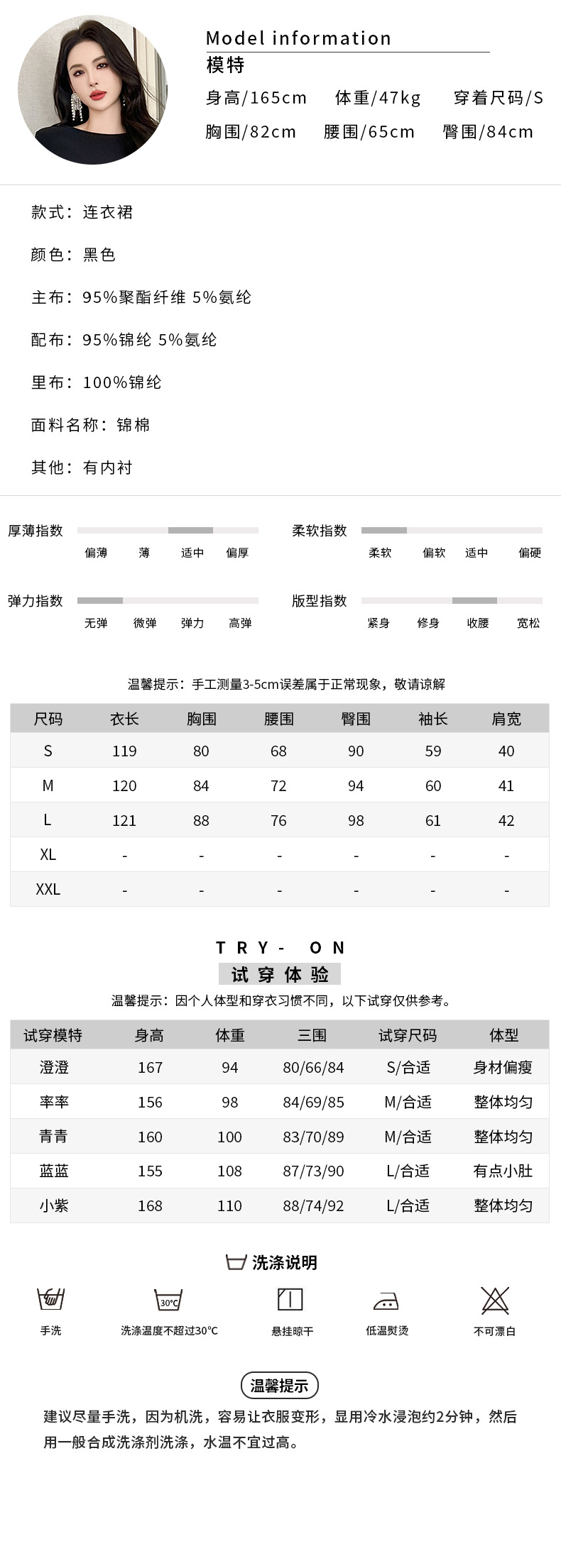 C-3153# 2024春装新款纯欲风透视镂空烫钻拼接修身开叉黑色连衣裙女21088