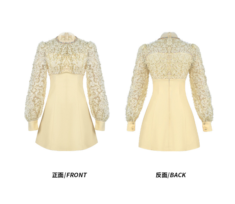 C-3196# 小洋装裙子2024春装新款女装甜美气质镶钻收腰显高A字连衣裙21108
