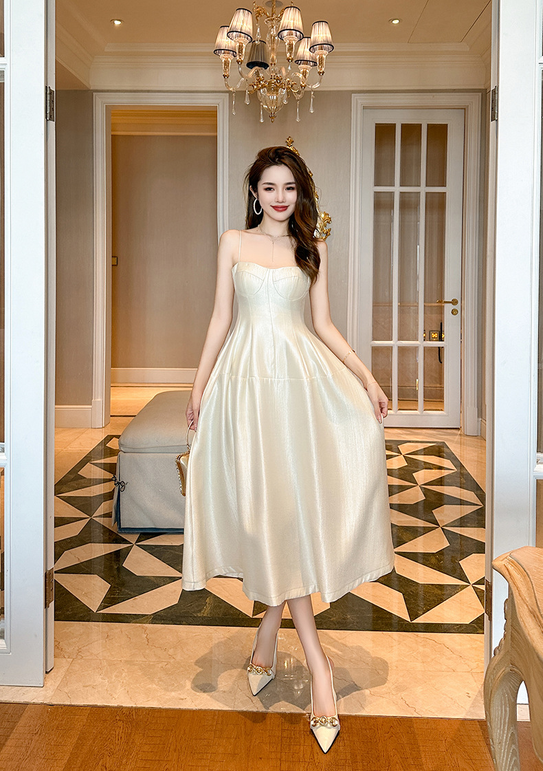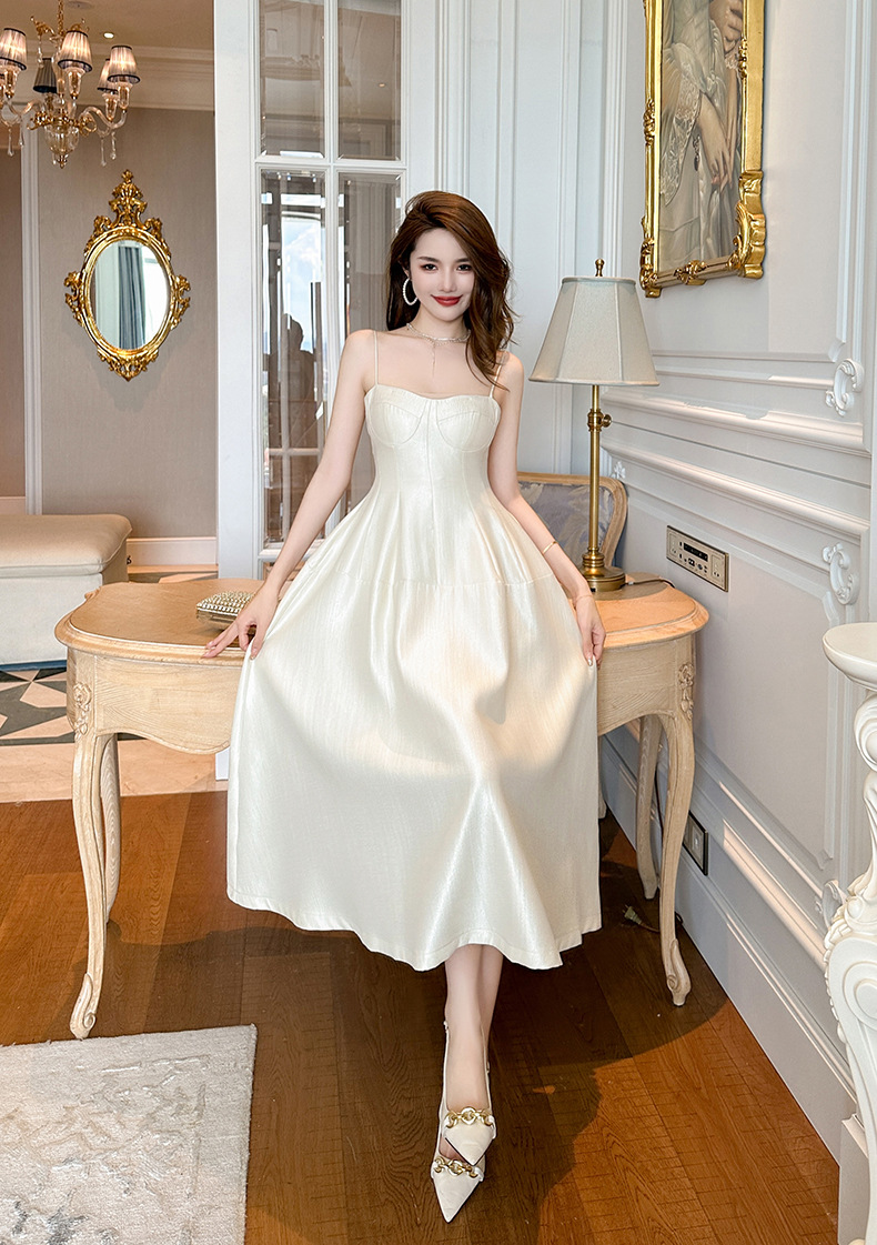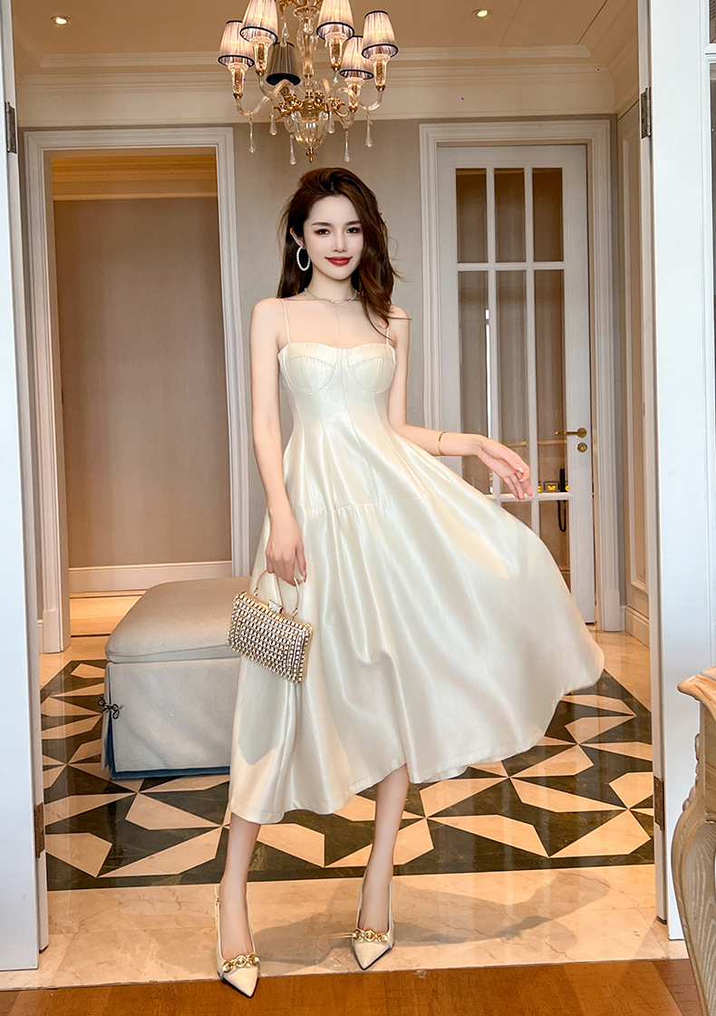 C-3222# 赫本风黑色长款大摆裙子2024夏季新款法式裹胸露肩吊带连衣裙9619