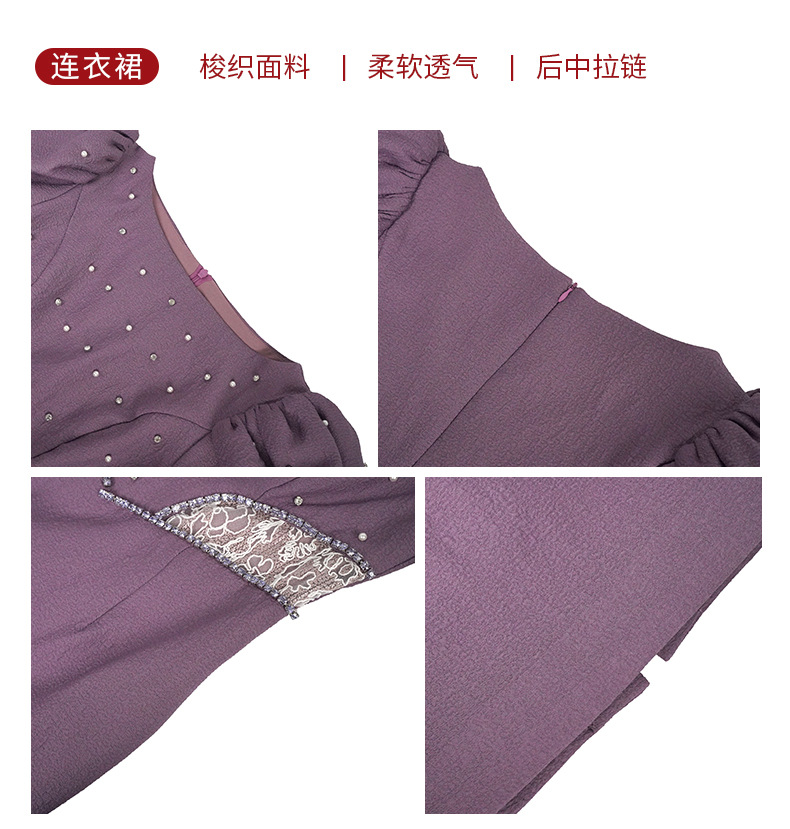C-3256# 礼服裙女2024夏季新款重工钉珠设计感圆领泡泡袖修身连衣裙21148