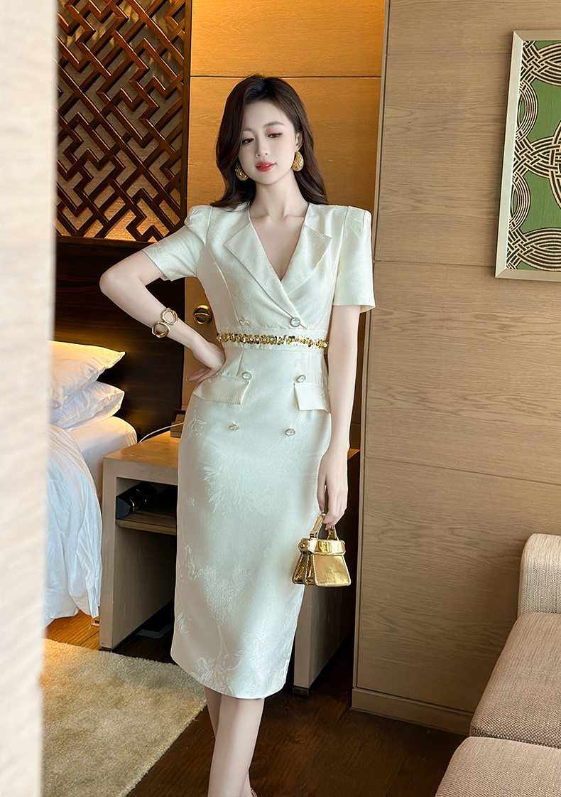 C-3496# 2024夏季新款女神职业气质通勤西装设计感包臀短袖连衣裙51000