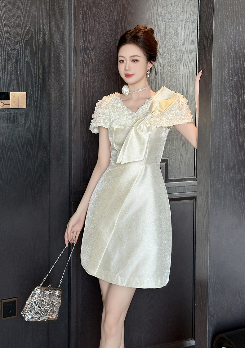 C-3551# 洋气生日小礼服2024夏季新款女装设计感减龄蝴蝶结修身连衣裙9884