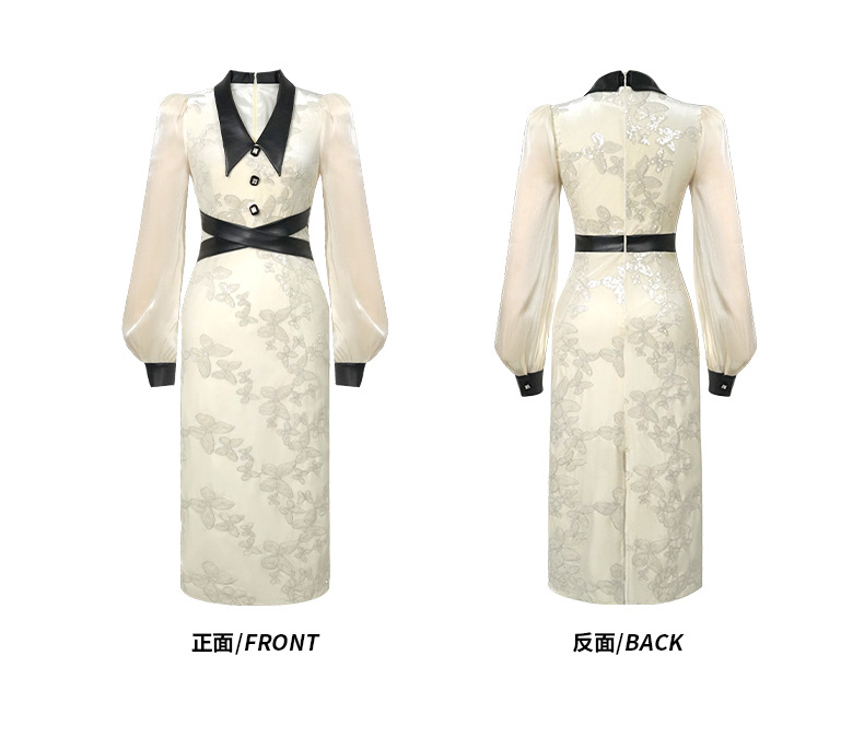 C-3610# 2024秋冬装新款女装法式气质娃娃领蝴蝶亮片收腰修身连衣裙91341