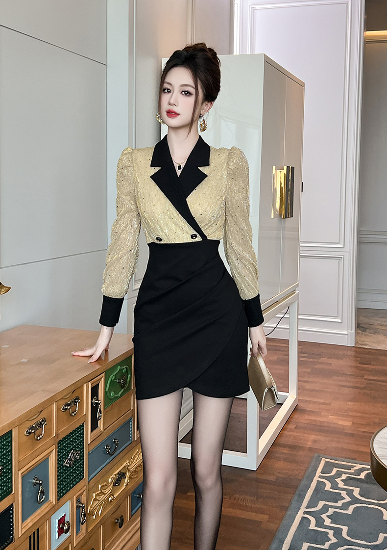 C-3625# 重要场合连衣裙气质名媛御姐风情万种裙子精致西装裙秋冬女51093