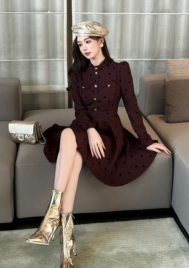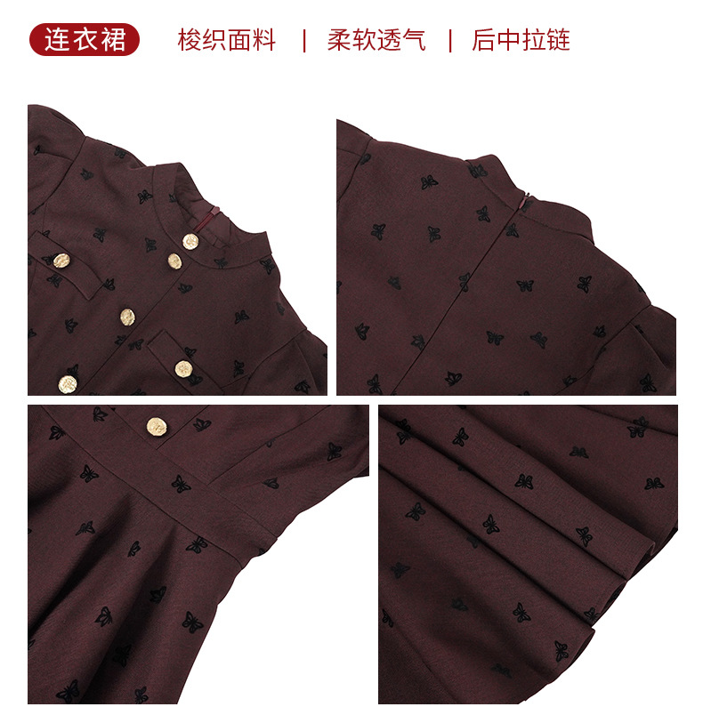 C-3663# 2024秋风装新款女小香风气质立领收腰显高蓬蓬小个子连衣裙21457
