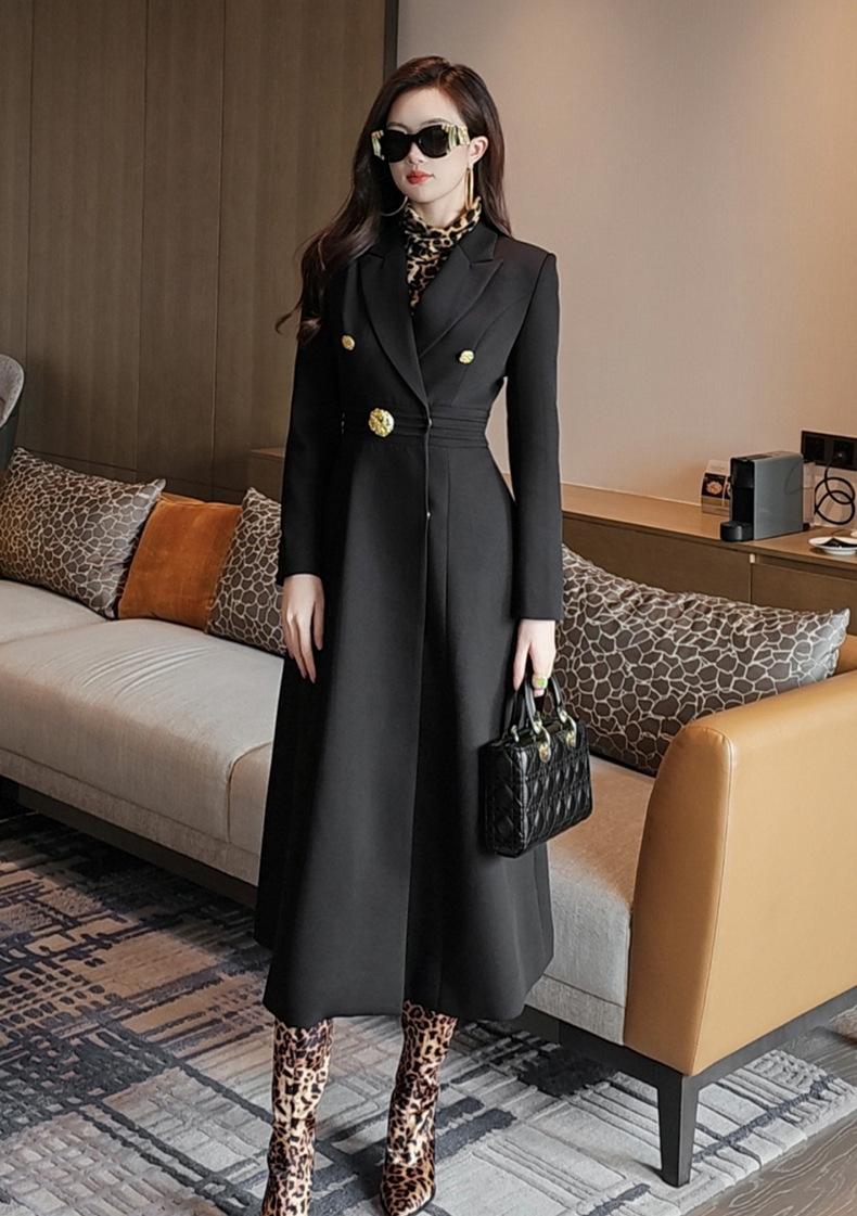 C-3727# 黑色风衣外套女长款2025春装新款设计感显瘦收腰西装大衣61119
