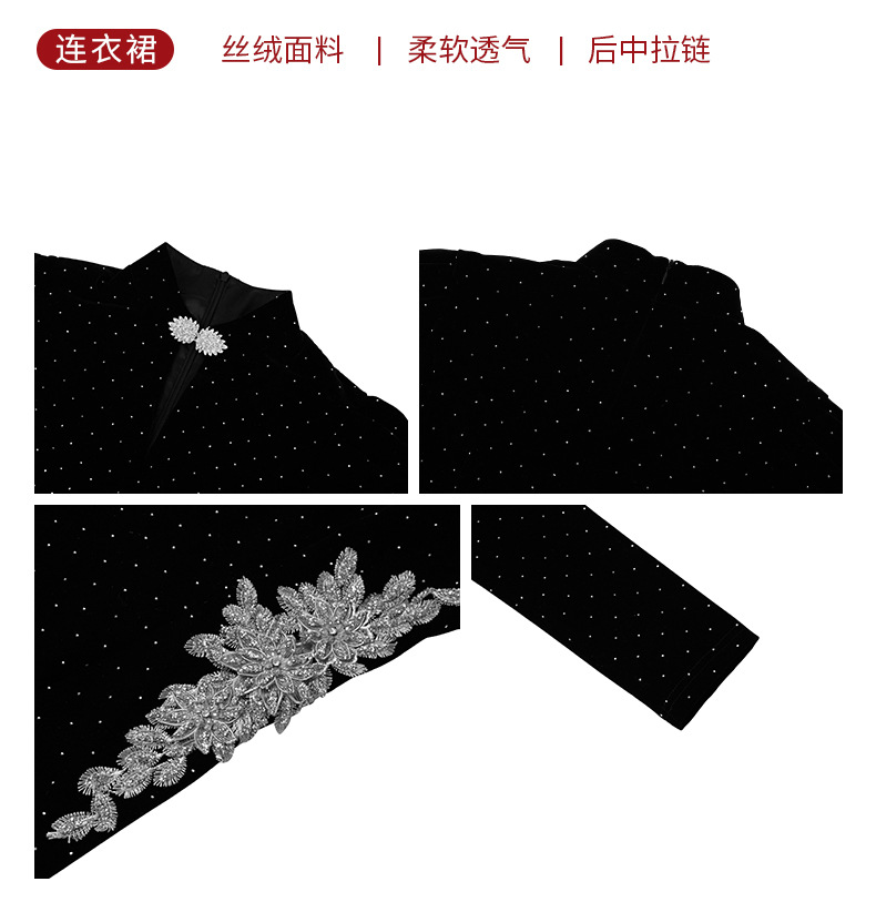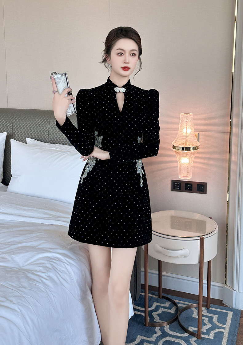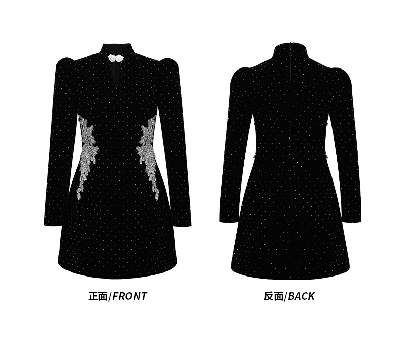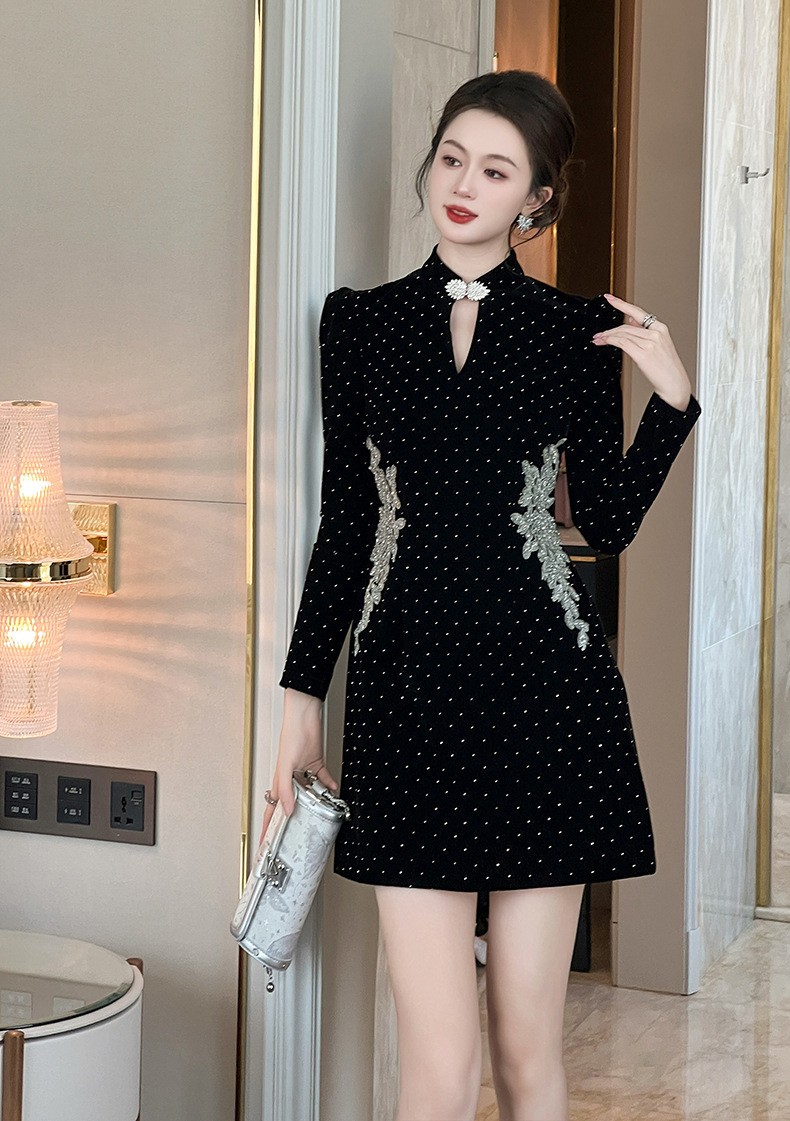 C-3783# 2025春装新款女装重工设计感烫钻刺绣新中式改良旗袍连衣裙21601
