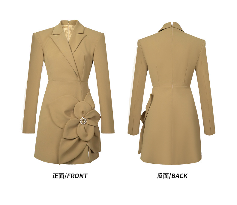 C-3825# 2025春装新款女装法式翻领设计感花朵收腰包臀西装连衣裙91396