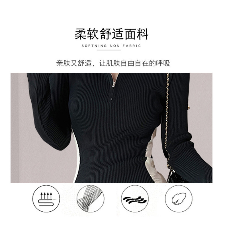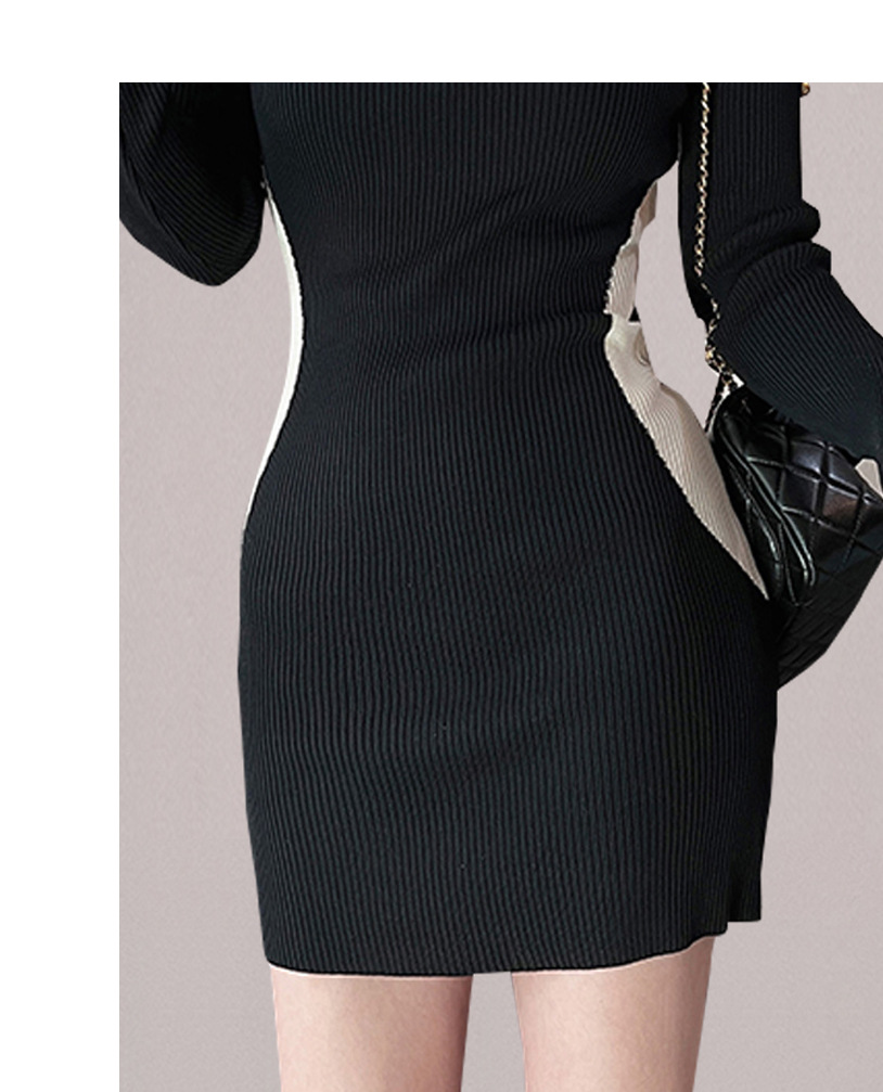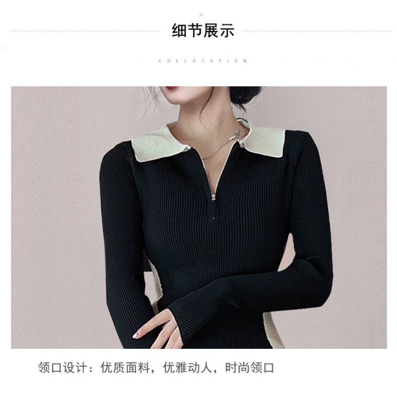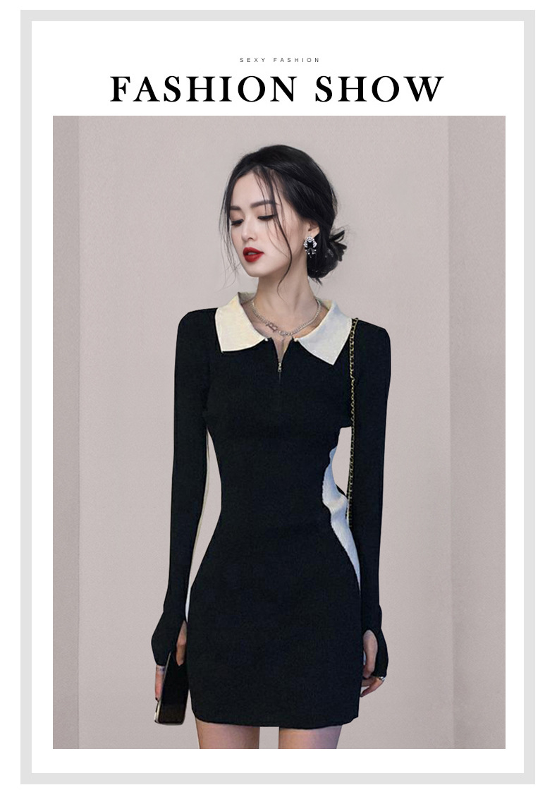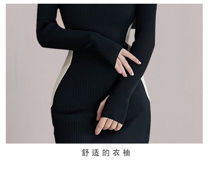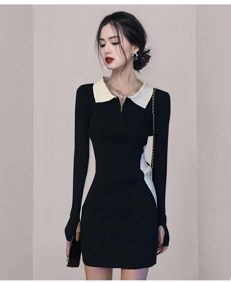 T-1144# 毛衣翻领连衣裙2022秋冬新款名媛长袖气质显瘦修身针织包臀一步裙