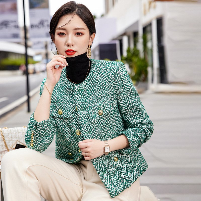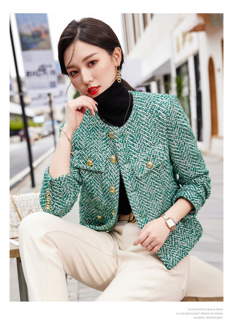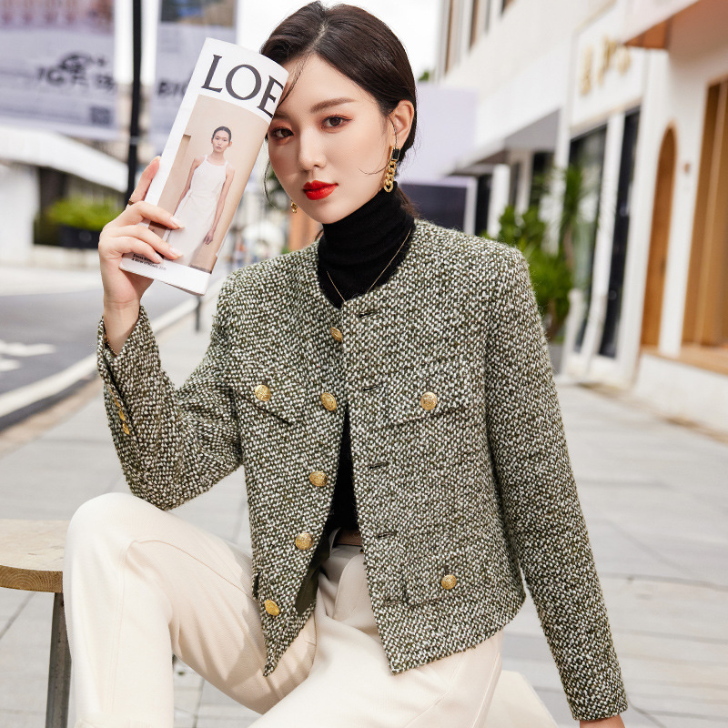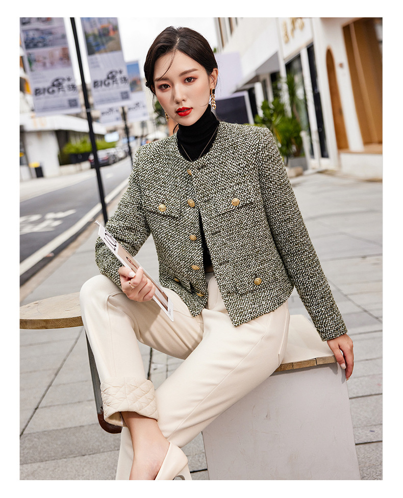 D-6099# 法式小香风粗花呢羊毛毛呢外套女秋冬新款设计感上衣气质名媛