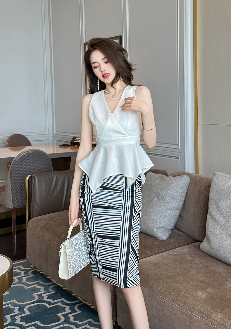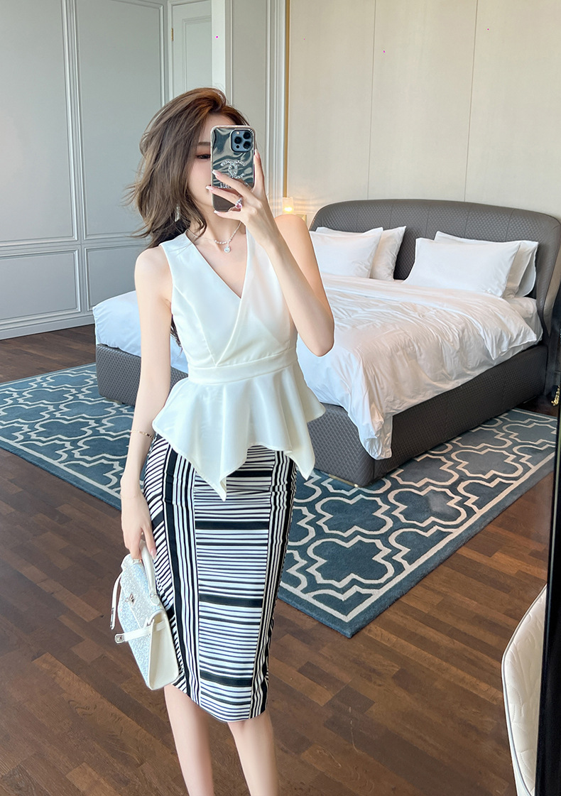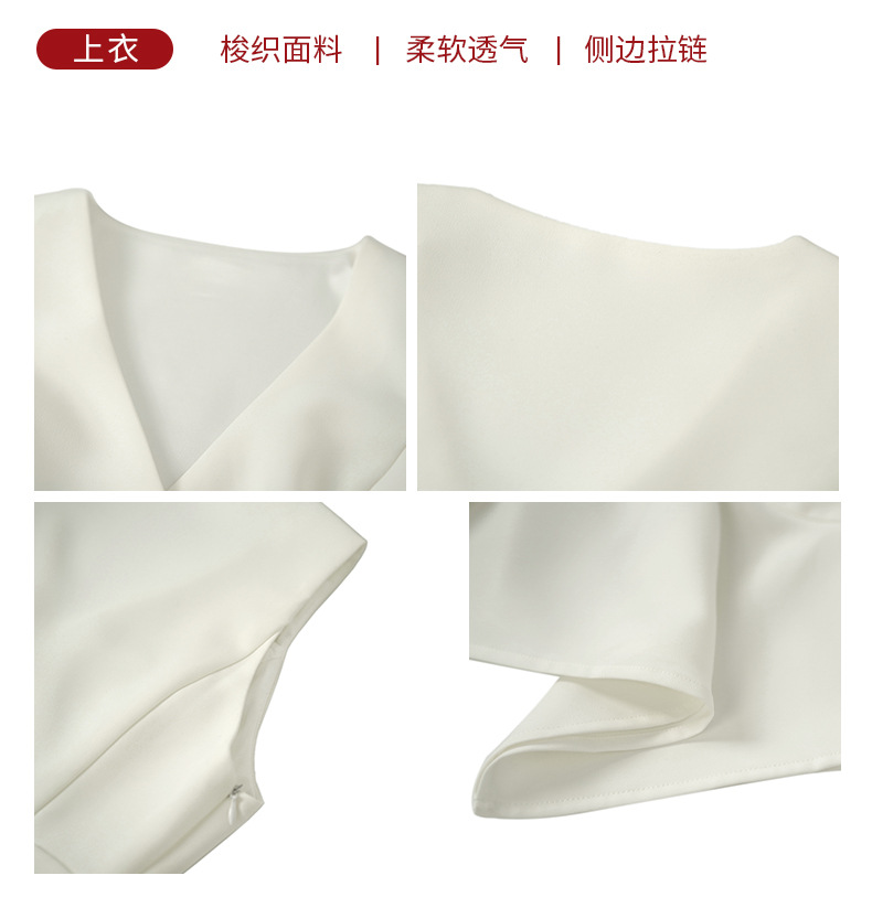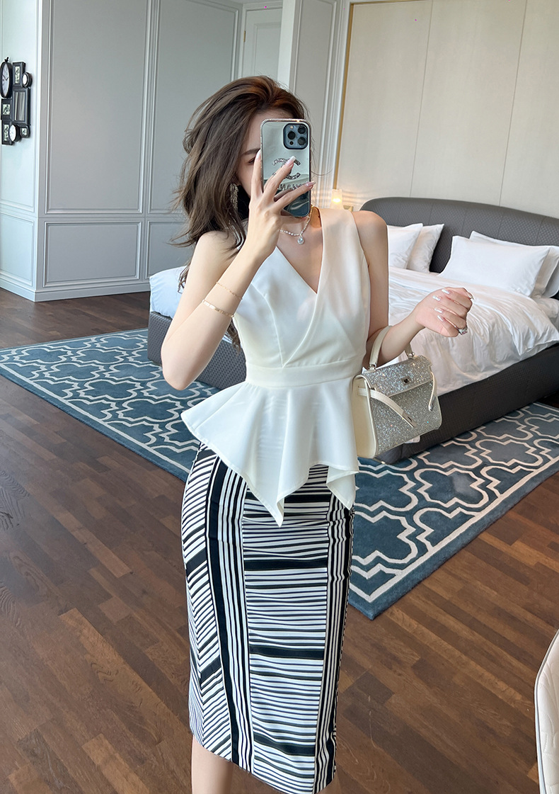 C-2486# 2023夏季新款女装法式气质V领收腰不规则上衣白色洋气衬衫20455