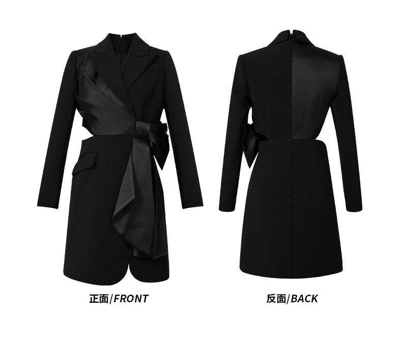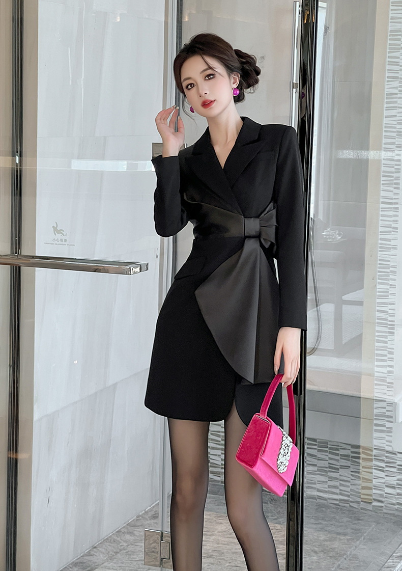 C-3670# 2024秋冬装新款御姐风气质设计感镂空蝴蝶结修身西装连衣裙61090