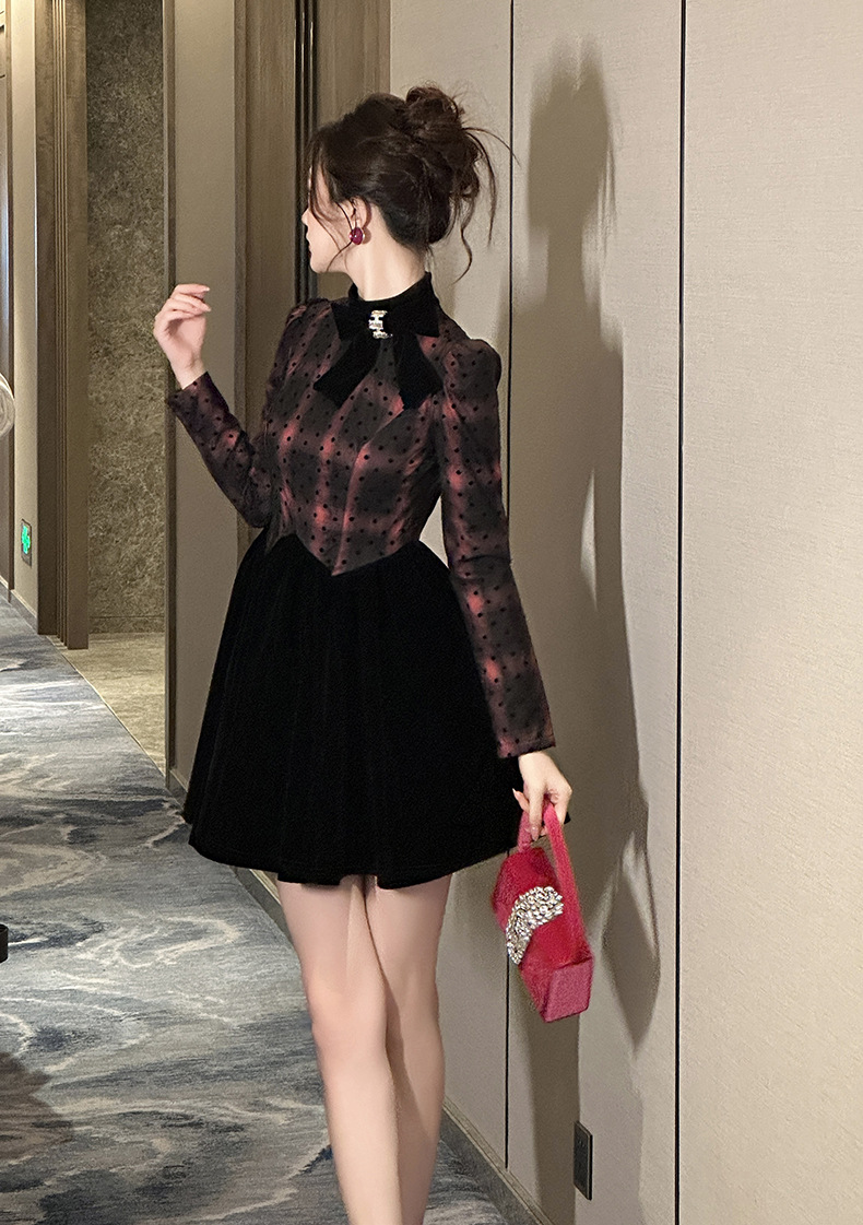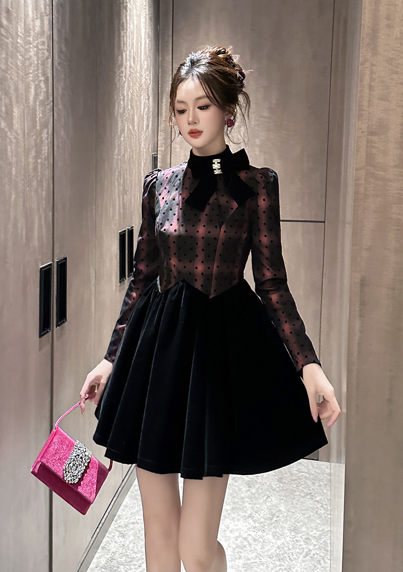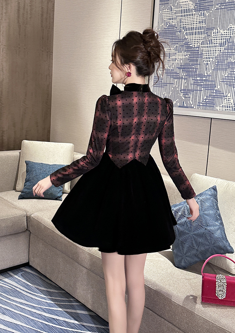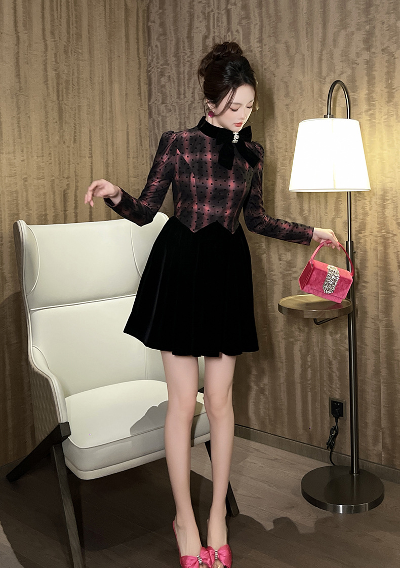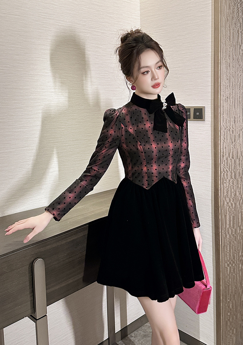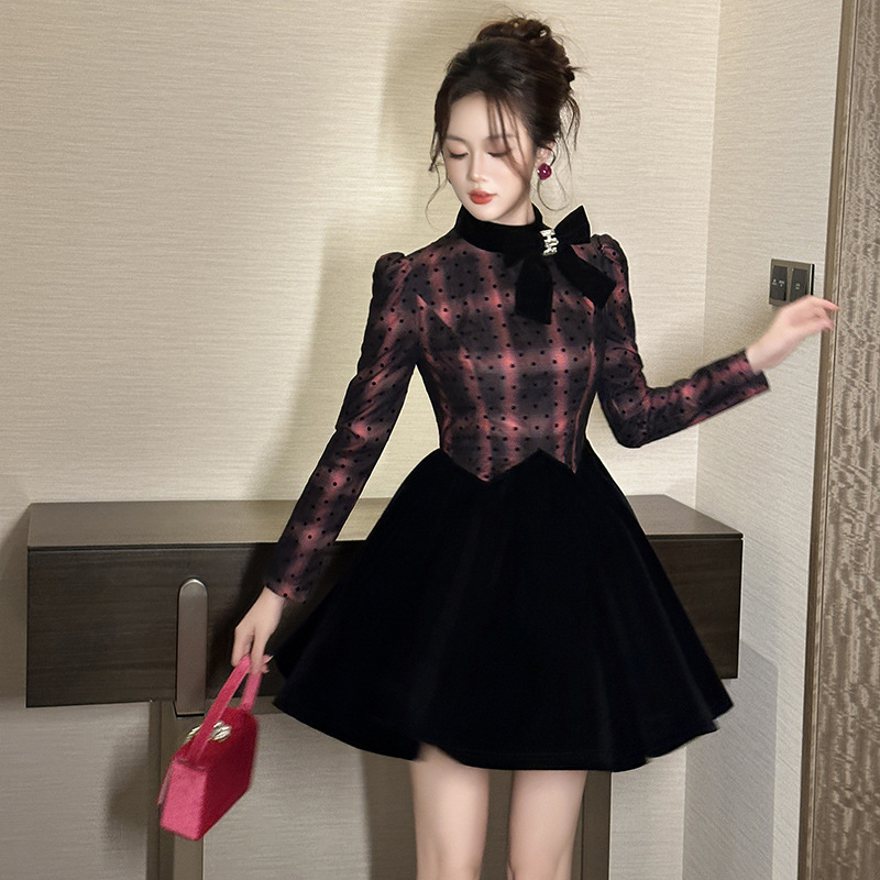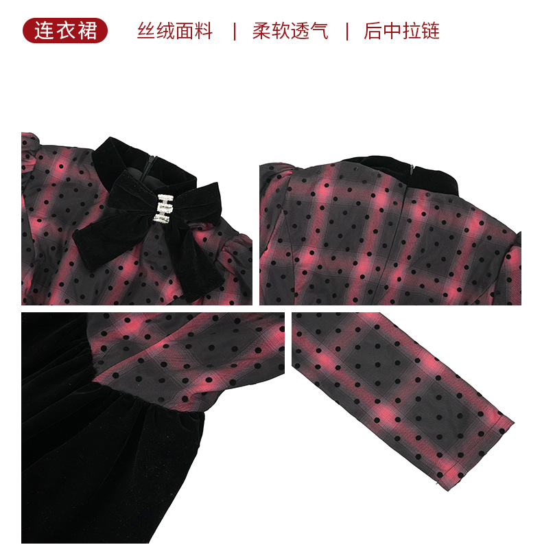 C-3853# O-1611# C-3853# 2025春装新款女装法式气质蝴蝶结减龄收腰格纹蓬蓬连衣裙21615