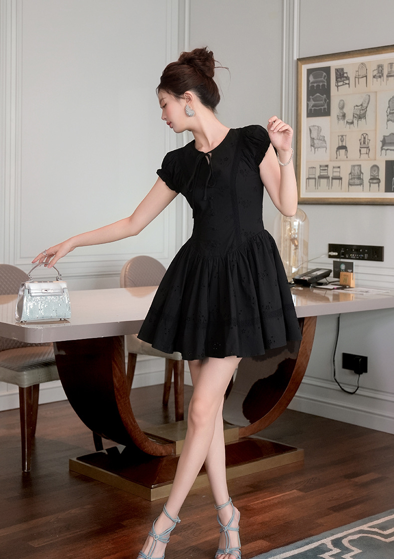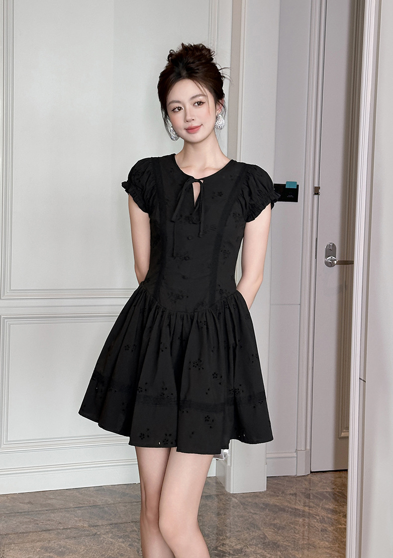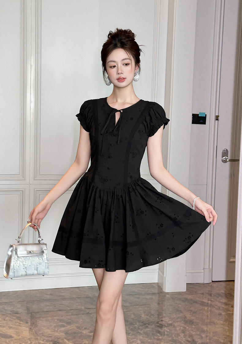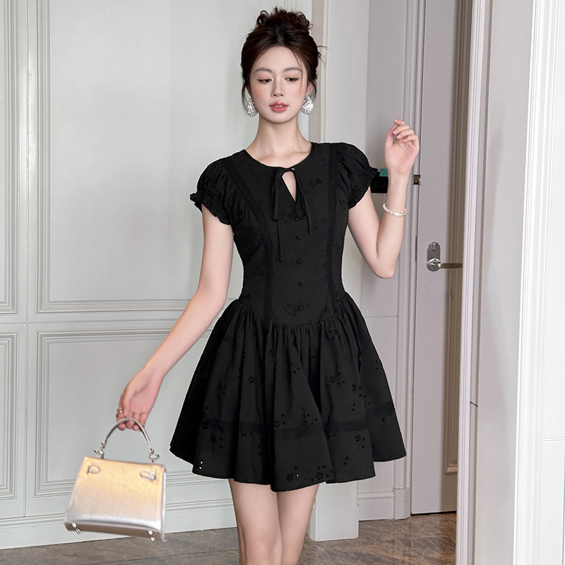 Home > 2025年7月12日---女装新款 > C-4003# 2025夏季新款女装法式圆领镂空设计感收腰小个子蓬蓬连衣裙61666