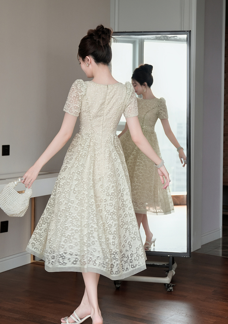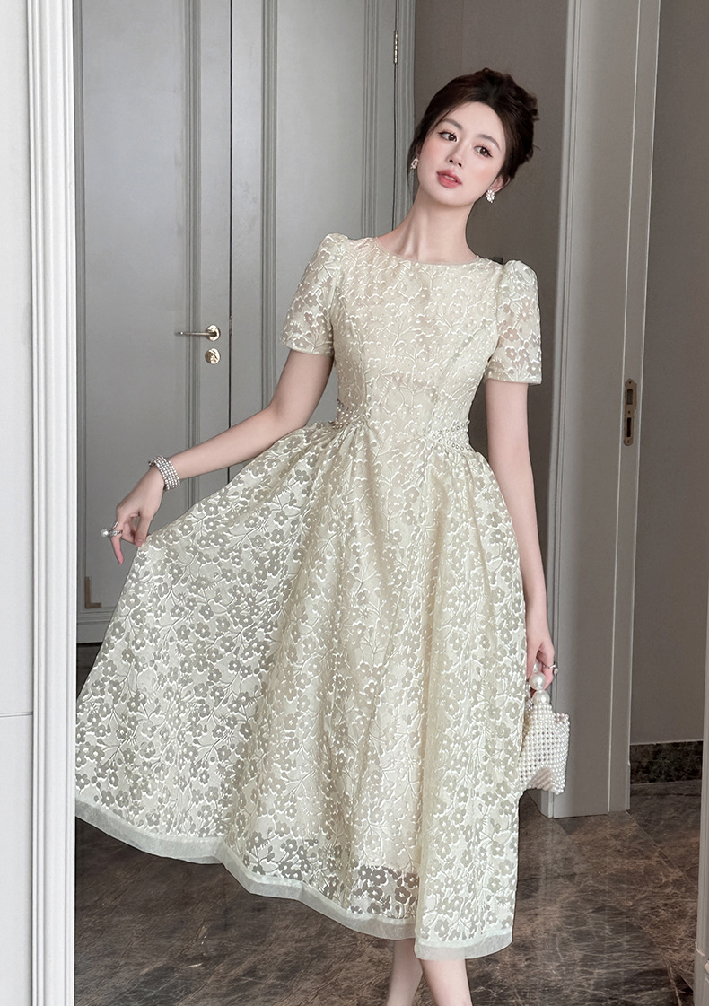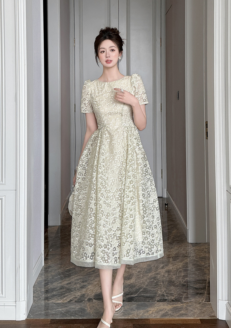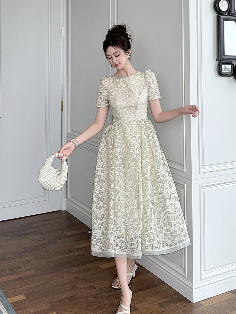 Home > 2025年7月12日---女装新款 > C-4011# 法式气质白月光连衣裙子女夏2025新款温柔漂亮掐腰蕾丝长裙45156