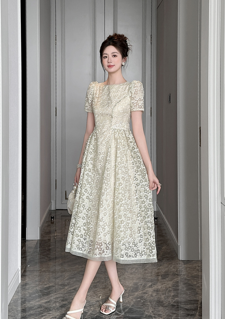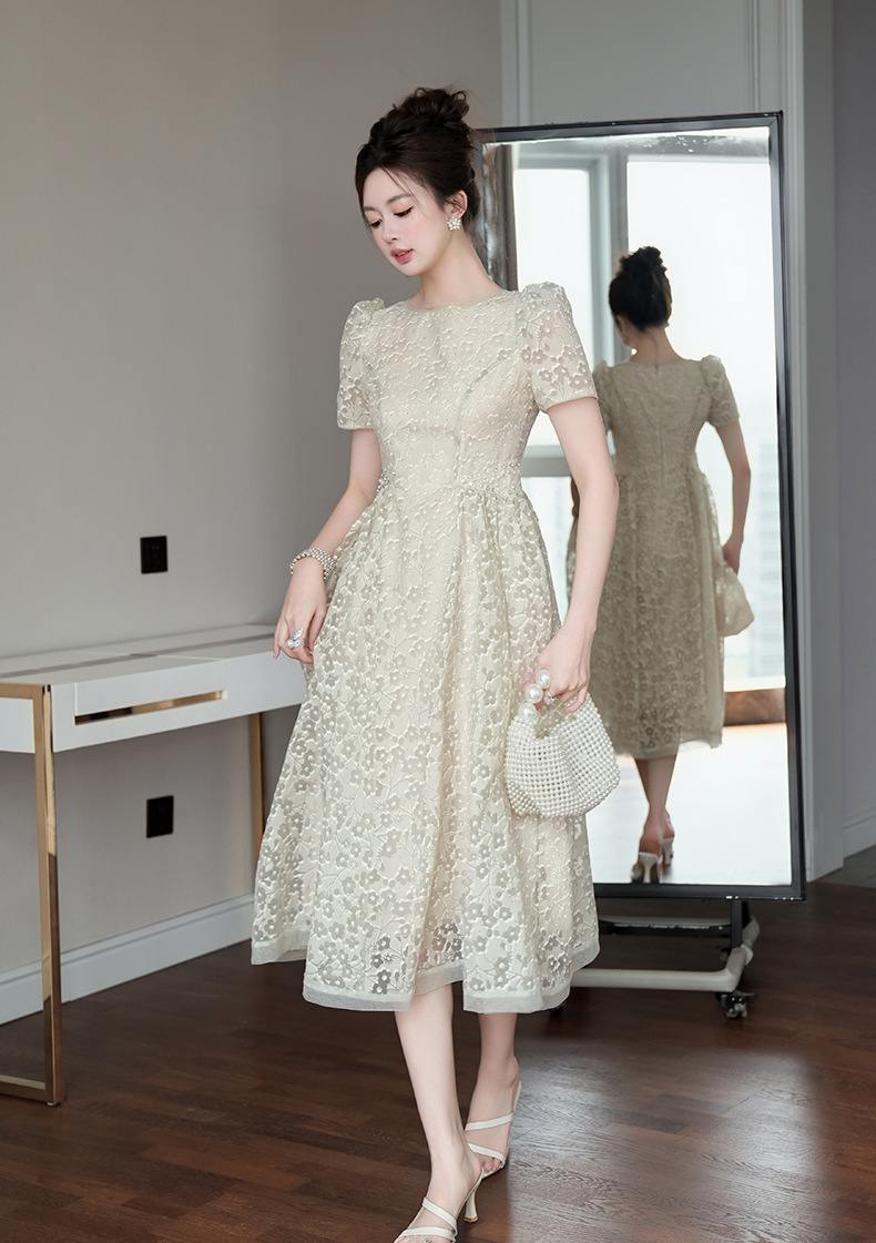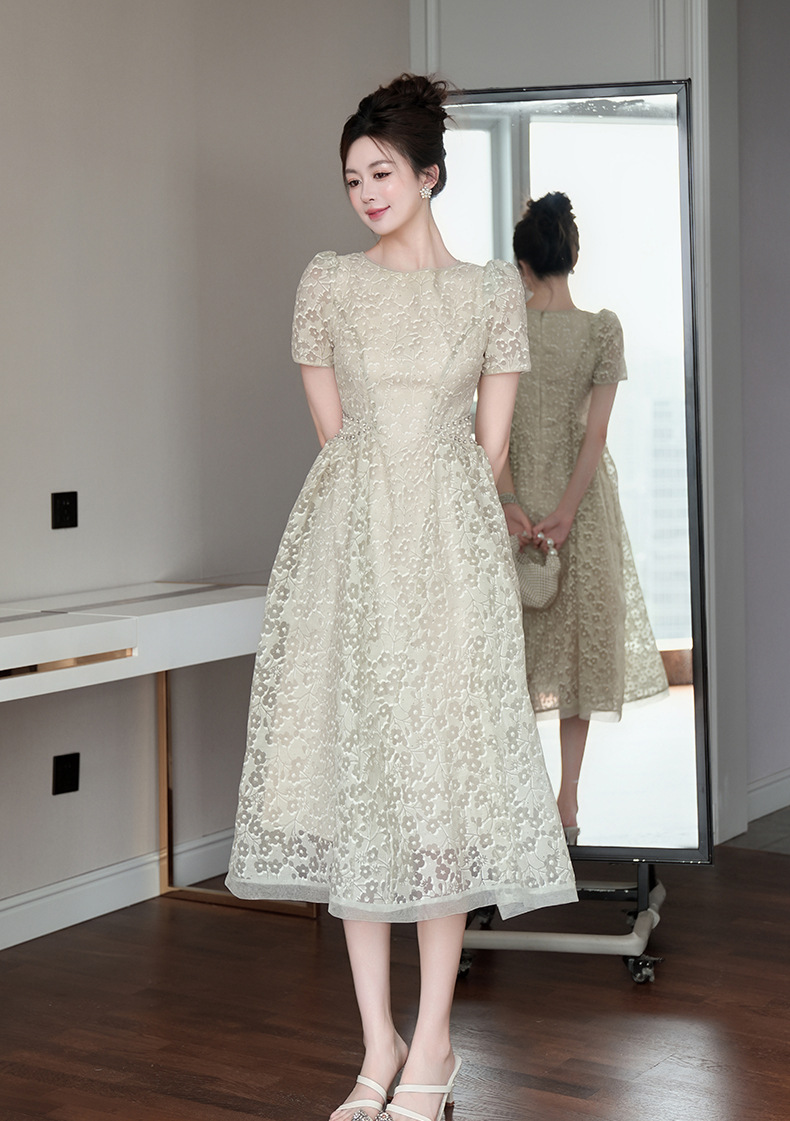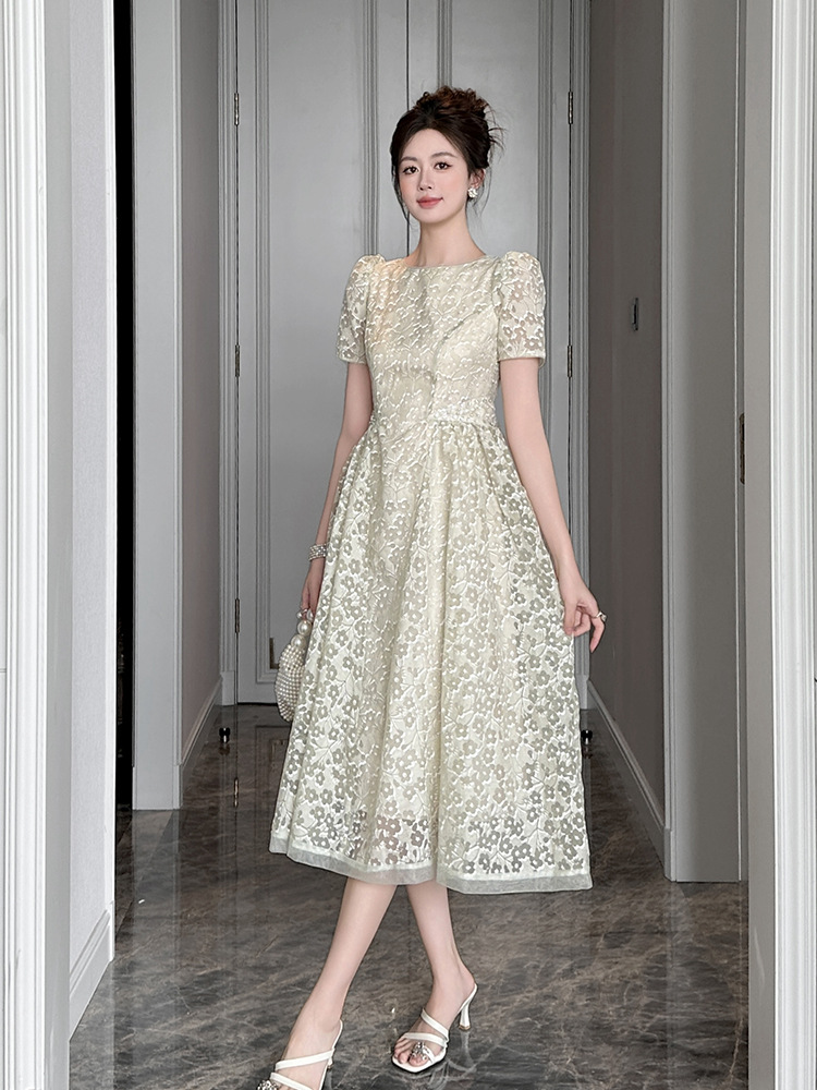 Home > 2025年7月12日---女装新款 > C-4011# 法式气质白月光连衣裙子女夏2025新款温柔漂亮掐腰蕾丝长裙45156