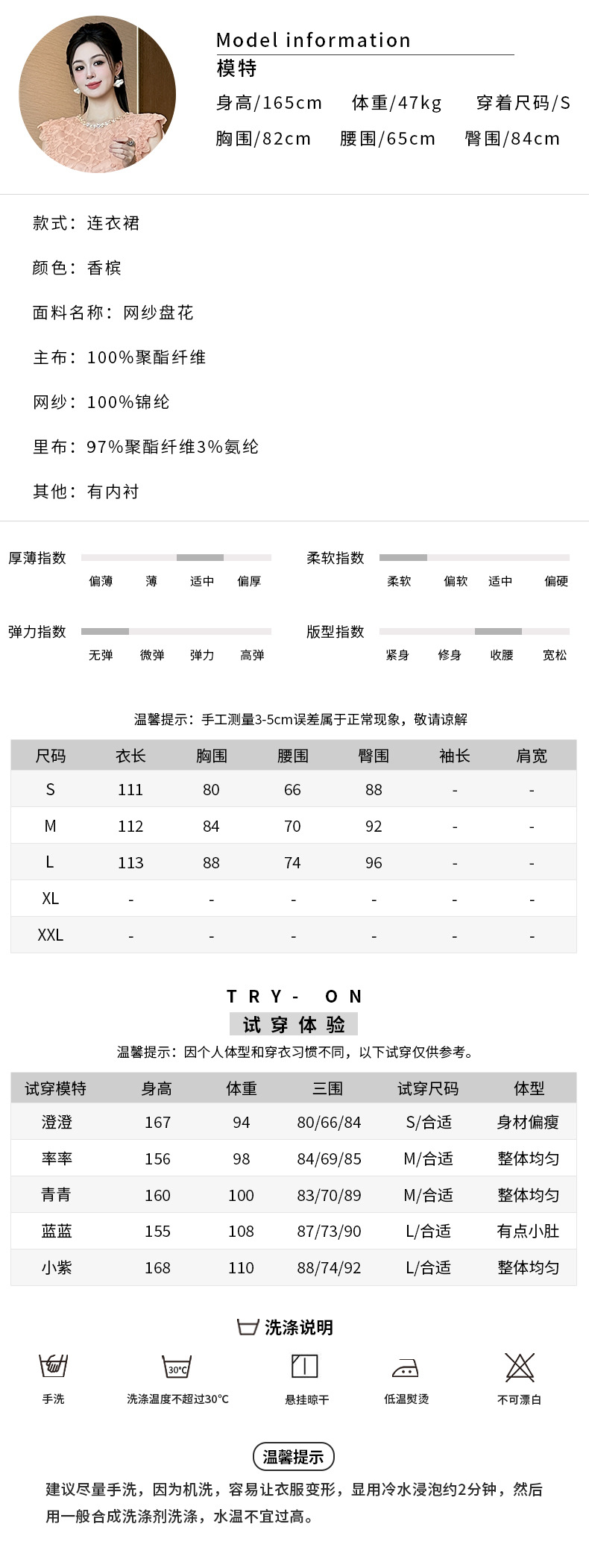 C-4224# 2025夏季新款女法式设计感收腰显瘦网纱立体花朵气质连衣裙61165