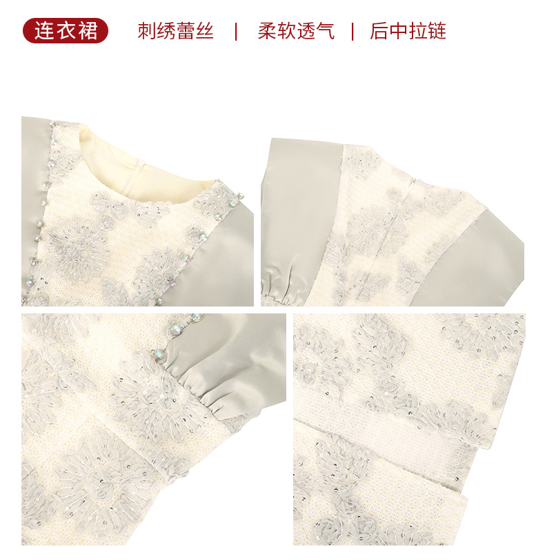 C-4226# 夏季新款女法式圆领刺绣蕾丝连衣裙中长款显瘦遮肉通勤裙子51359