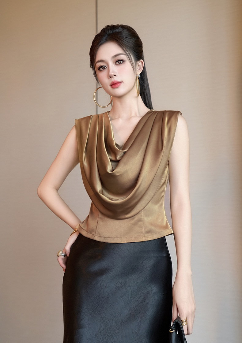 C-4242# 2025夏季新款女装法式设计感荡领修身无袖衬衫别致显瘦上衣31256