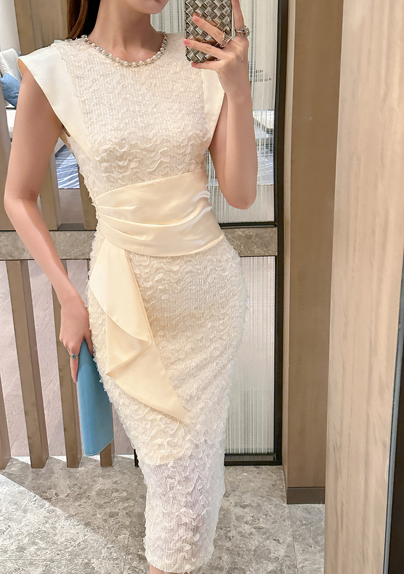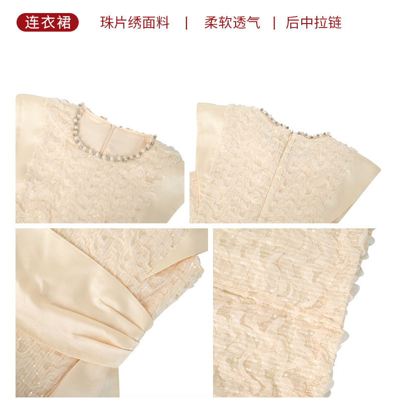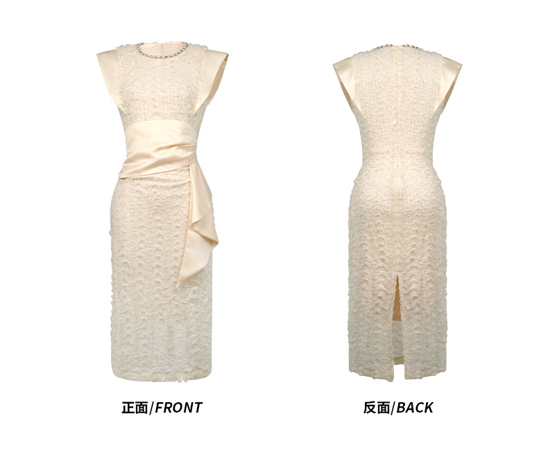 C-4246# 日常礼服裙2025夏季新款女法式圆领设计感收腰荷叶边连衣裙51386