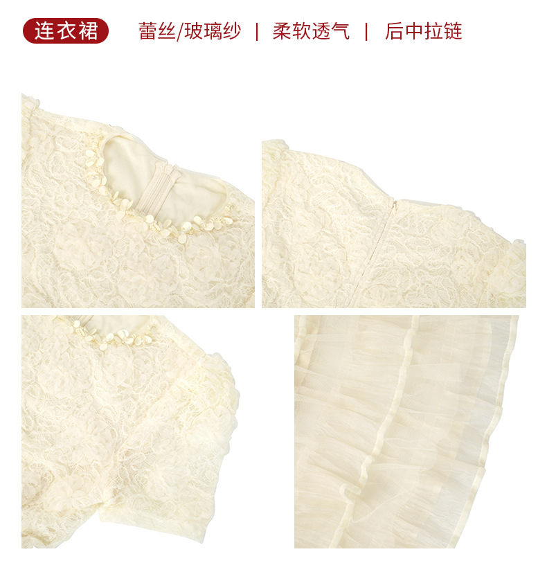 C-4255# 法式重工网纱层层蛋糕长裙女2025新款气质收腰显瘦连衣裙仙21760