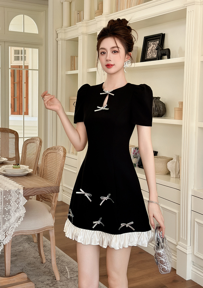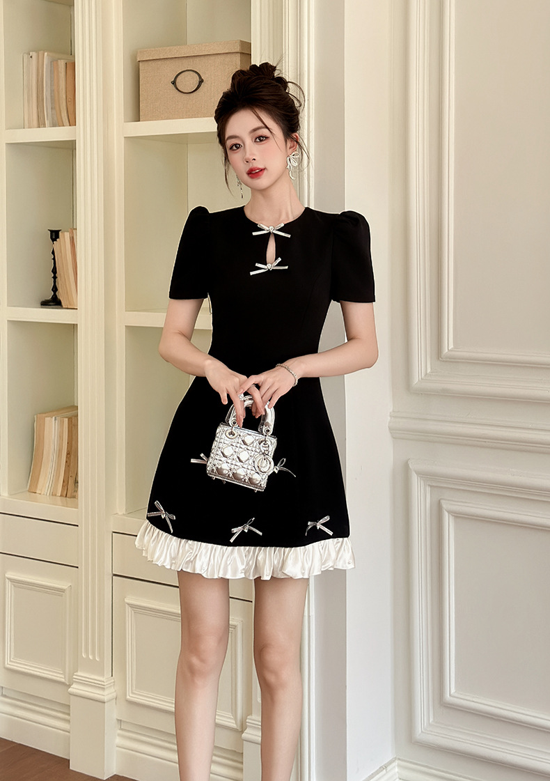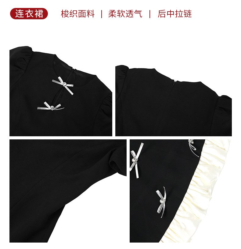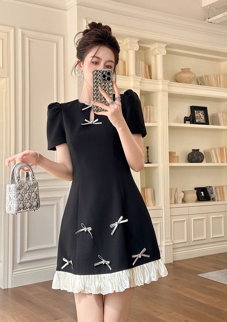 C-4268# 2025夏季新款女装法式小香风气质蝴蝶结减龄收腰生日连衣裙65397