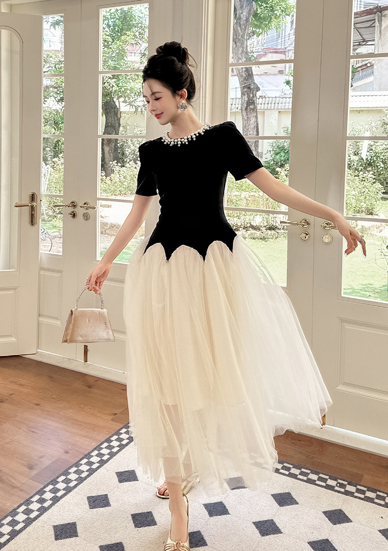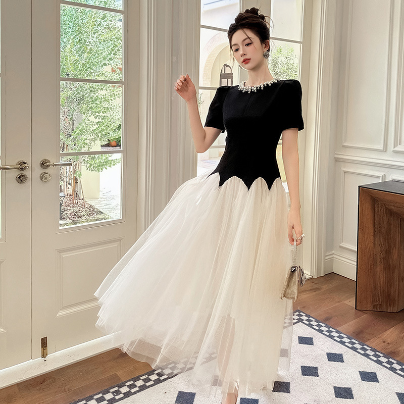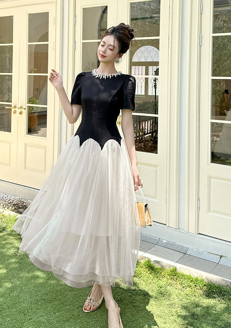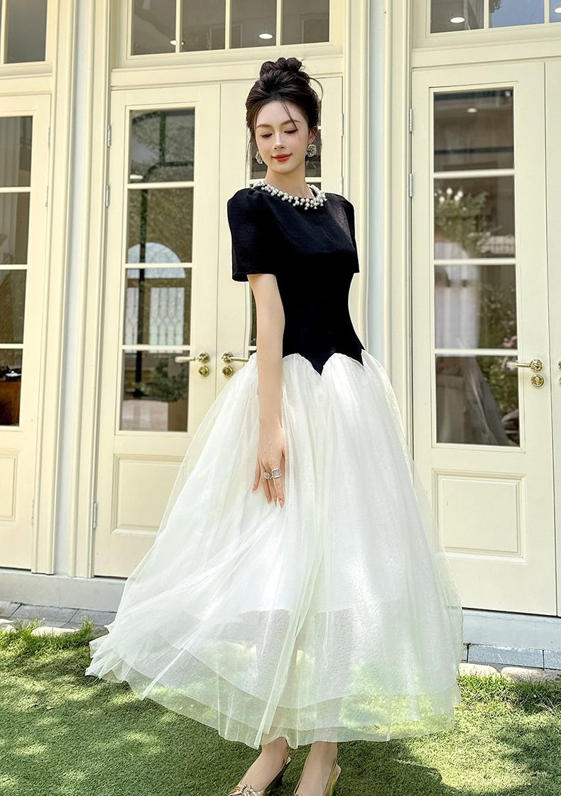 C-4269# 2025夏季新款女装法式收腰蓬蓬大摆网纱连衣裙赫本风公主长裙9020