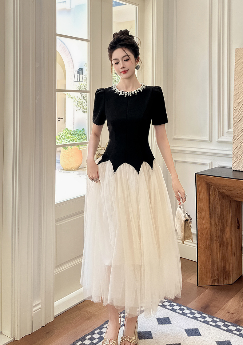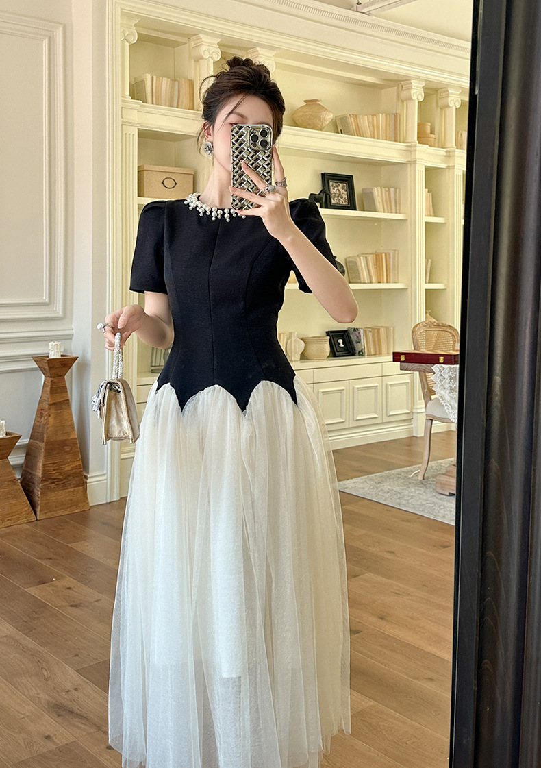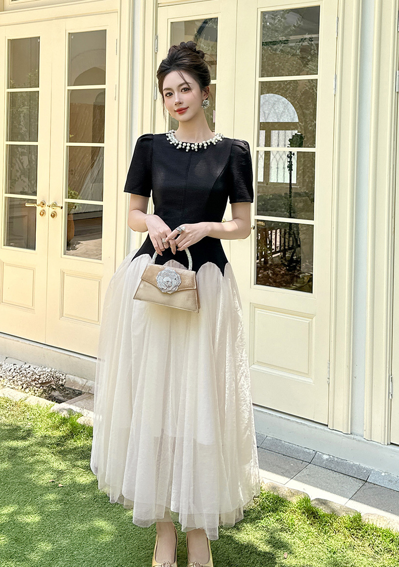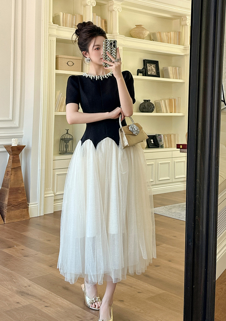 C-4269# 2025夏季新款女装法式收腰蓬蓬大摆网纱连衣裙赫本风公主长裙9020