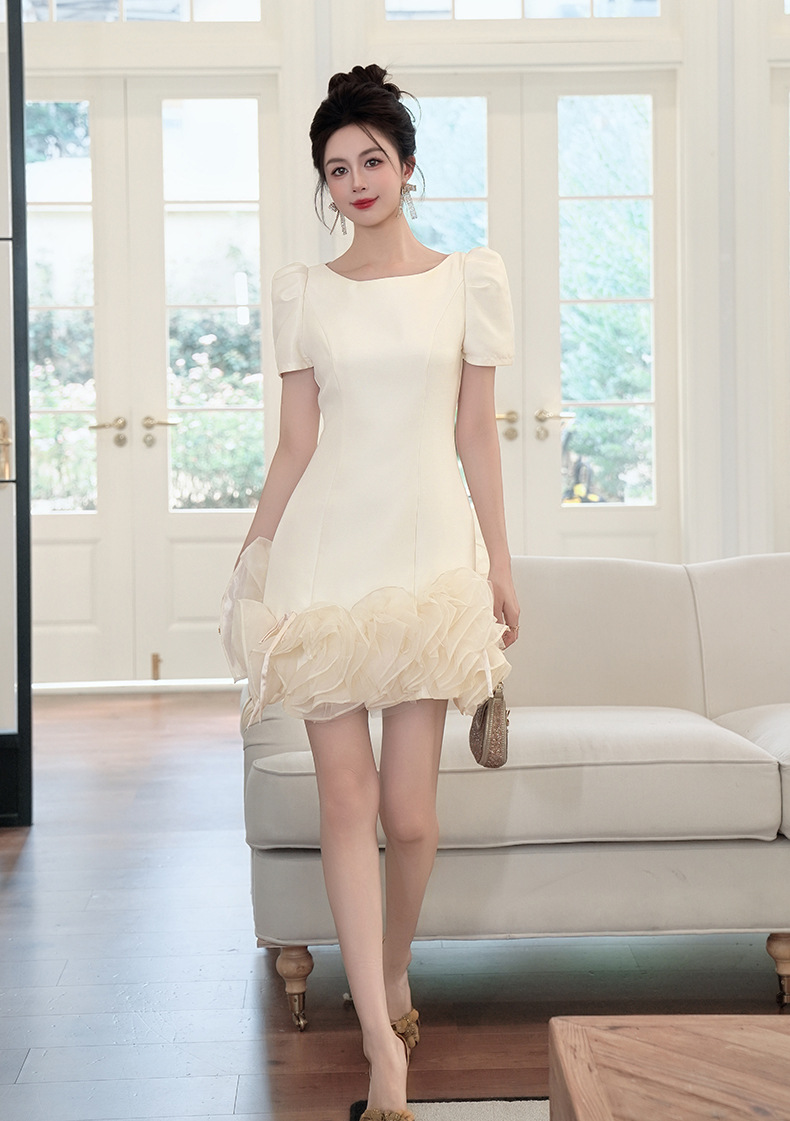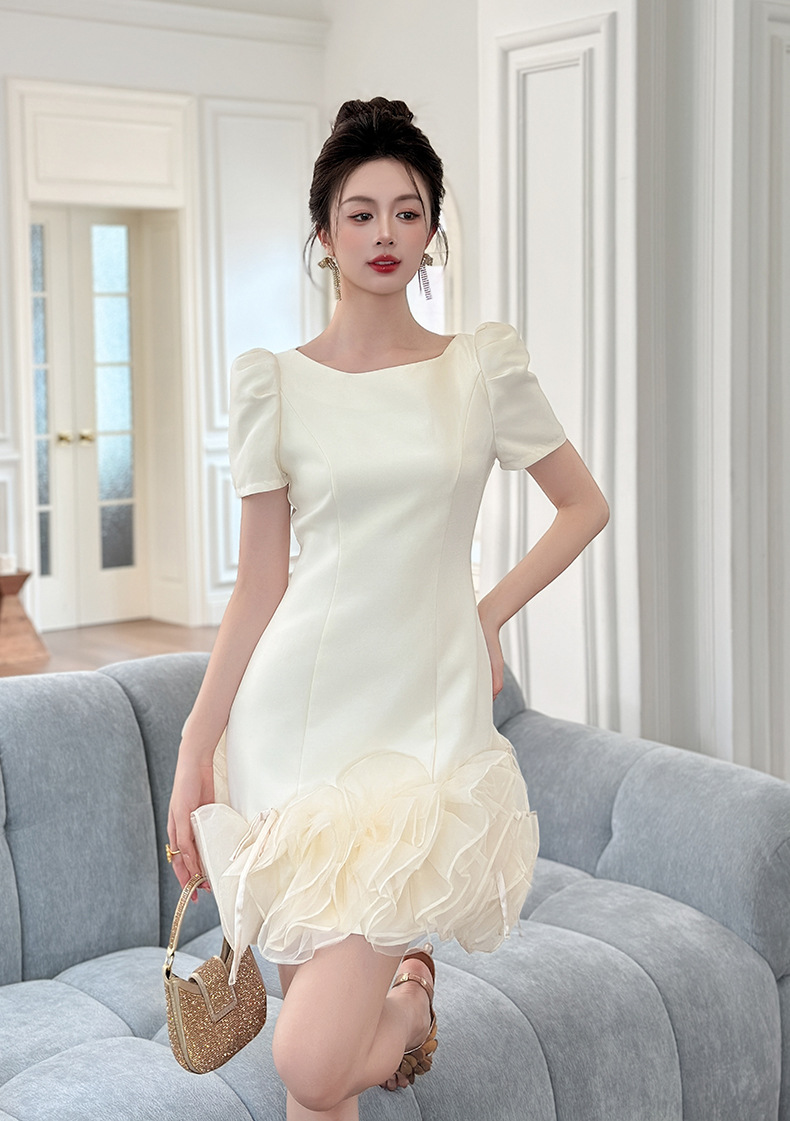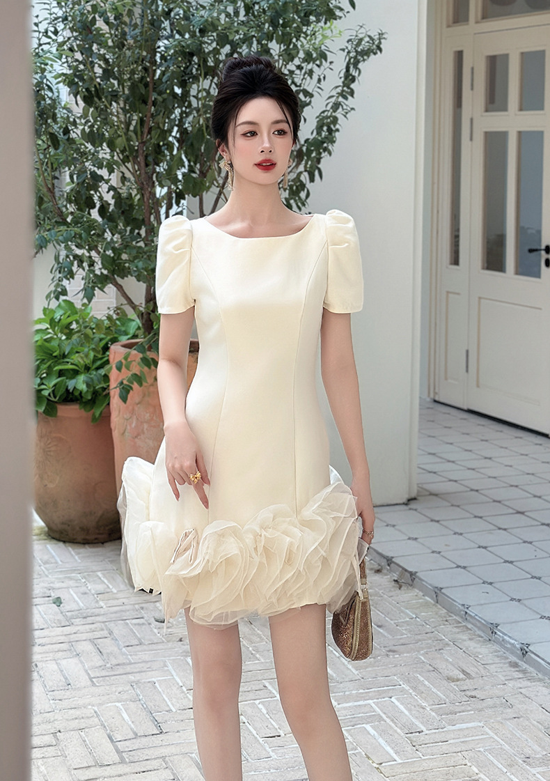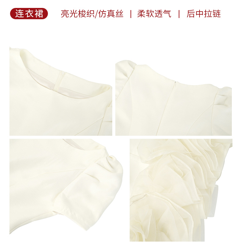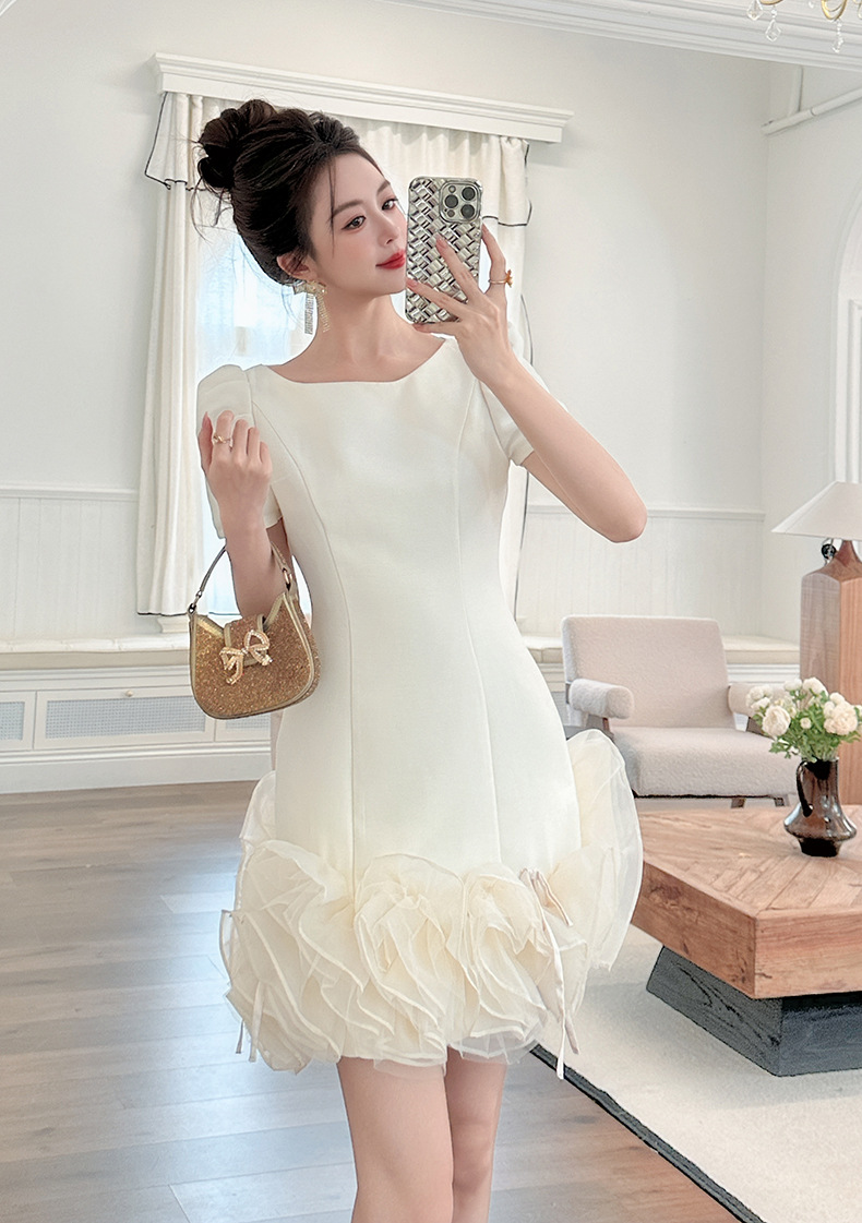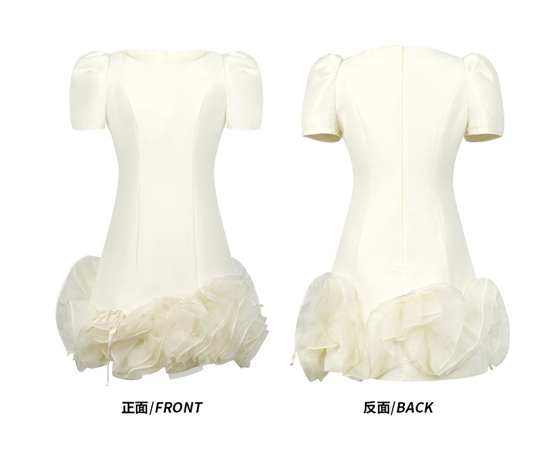 C-4273# 2025夏季新款女装法式圆领设计感不规则修身显瘦蓬蓬连衣裙11572