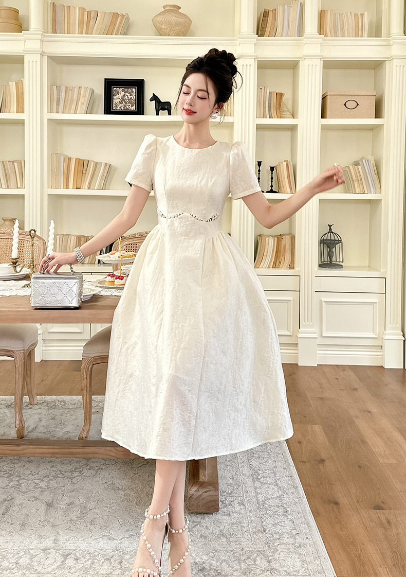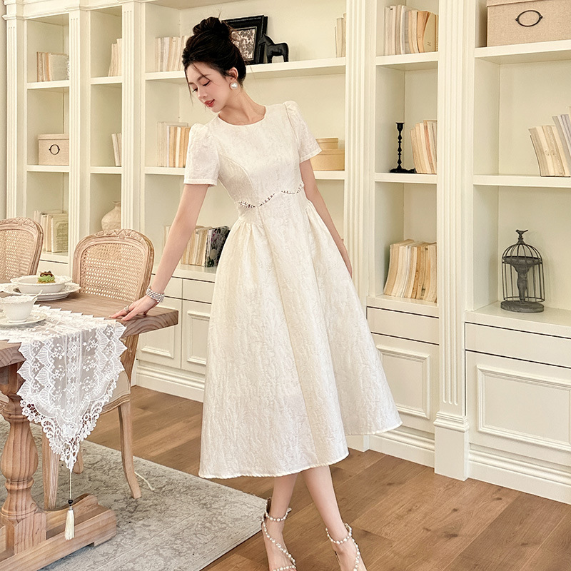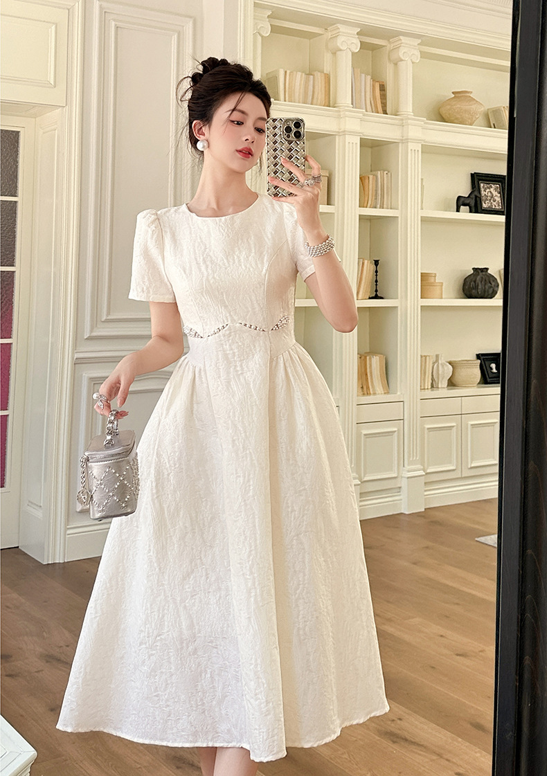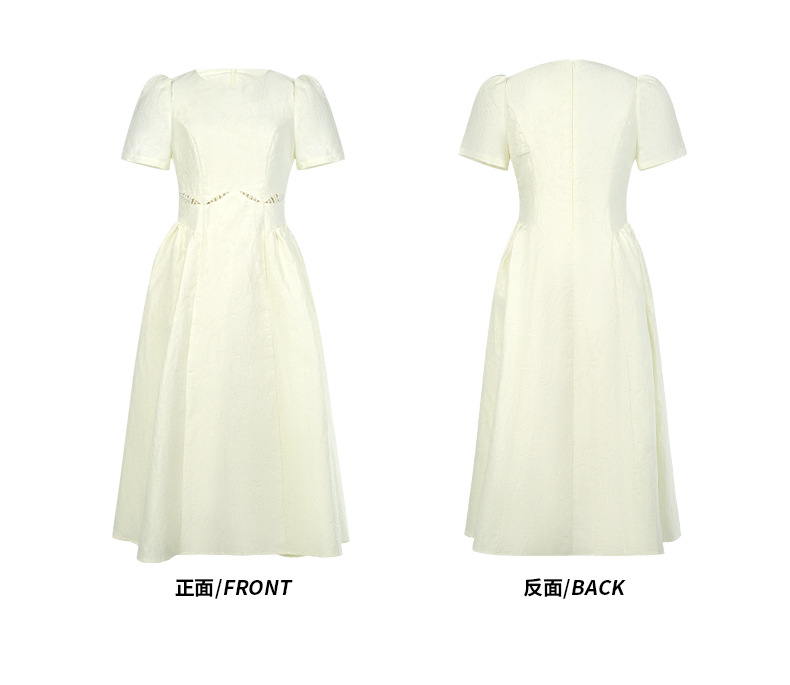 C-4275# 2025夏季新款女装法式圆领收腰镂空设计感垂感大摆连衣裙45196
