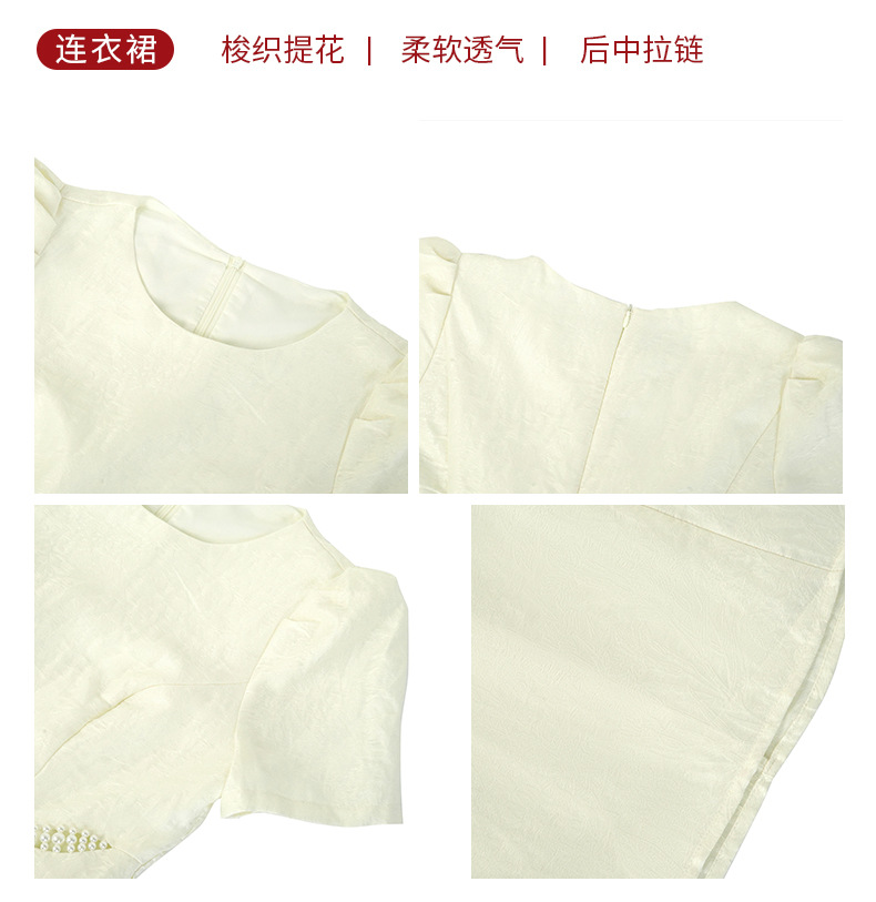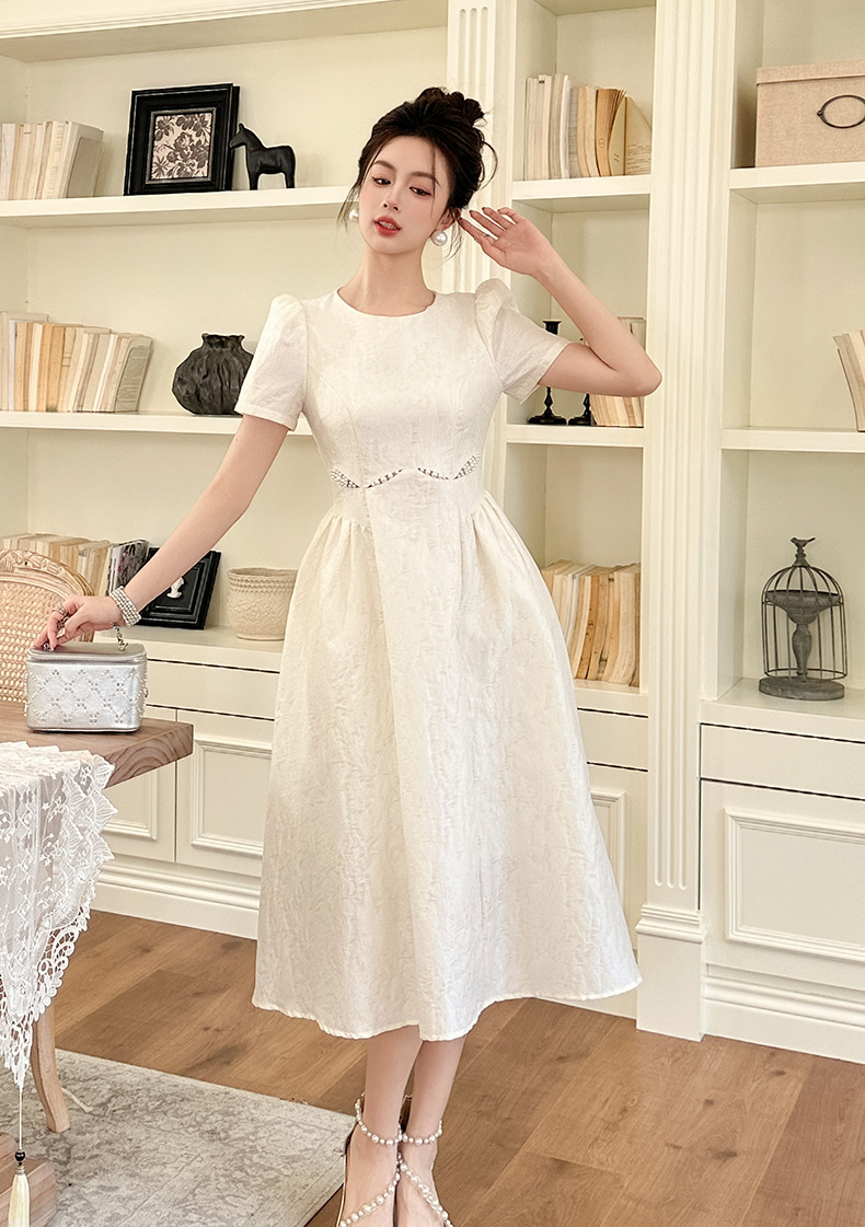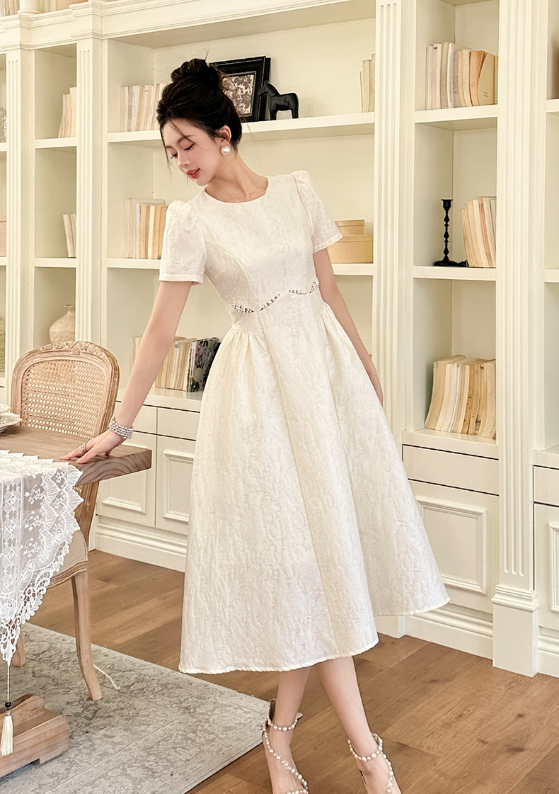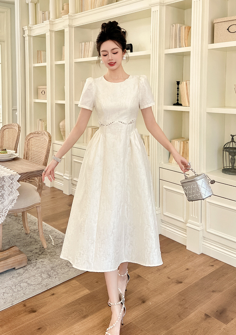 C-4275# 2025夏季新款女装法式圆领收腰镂空设计感垂感大摆连衣裙45196