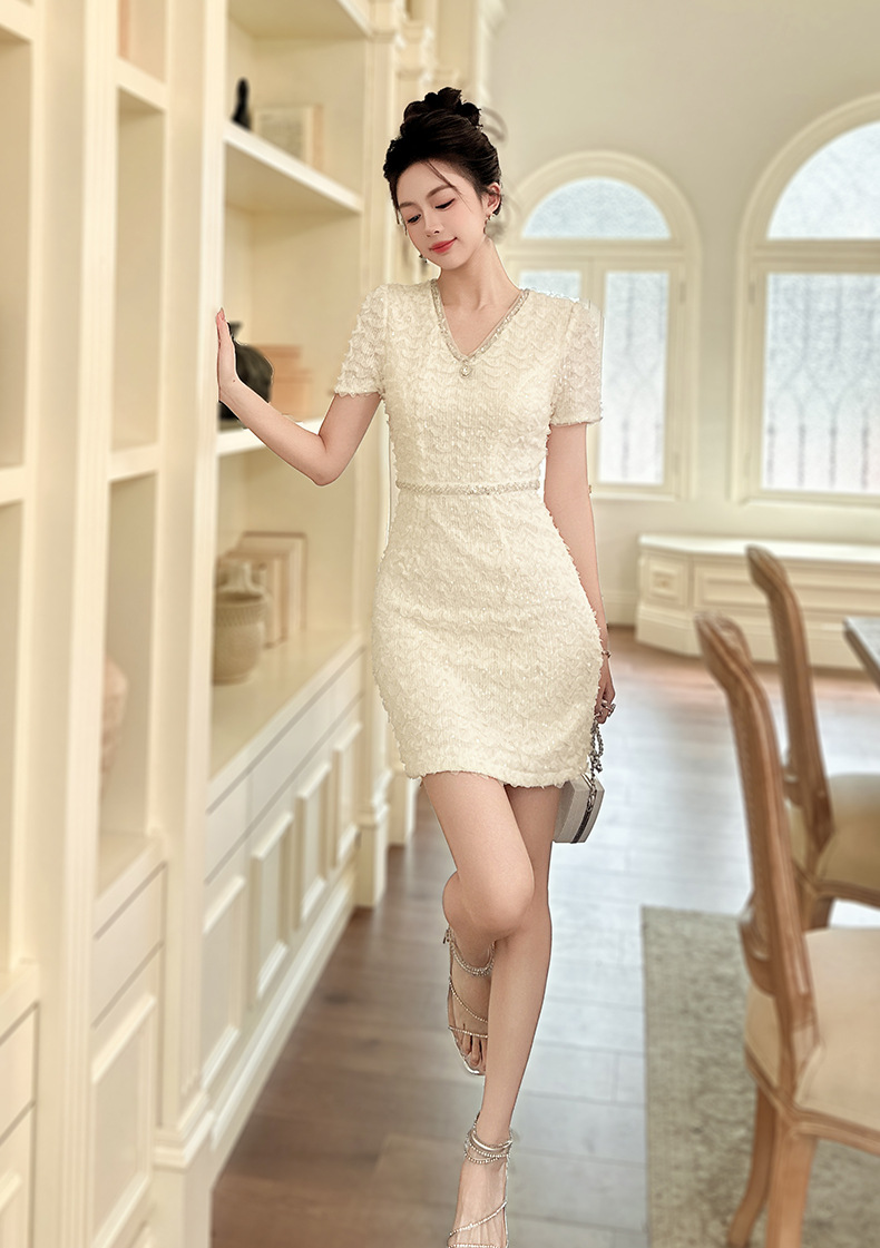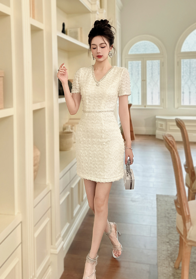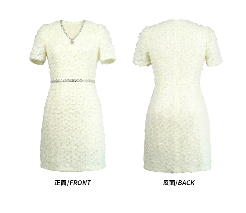 C-4276# 2025夏季新款女装小香风气质重工镶钻收腰包臀小个子连衣裙61219