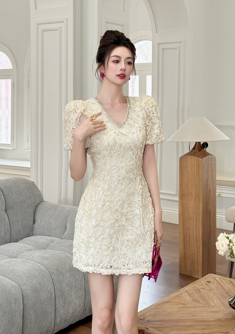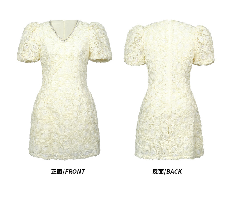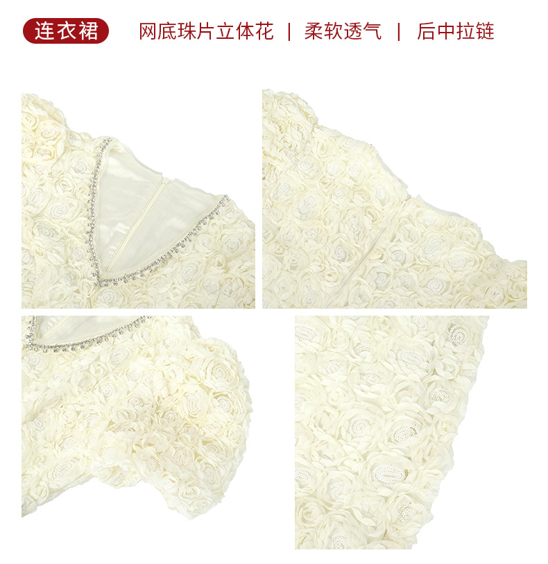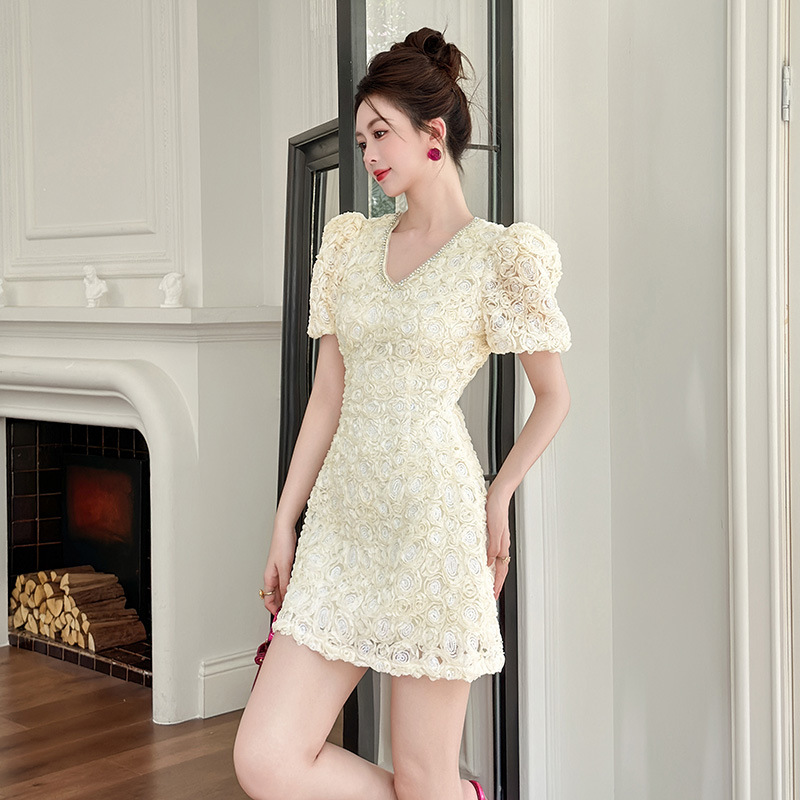 C-4277# 2025夏季新款女法式V领收腰立体花朵a字连衣裙富家千金裙子31229