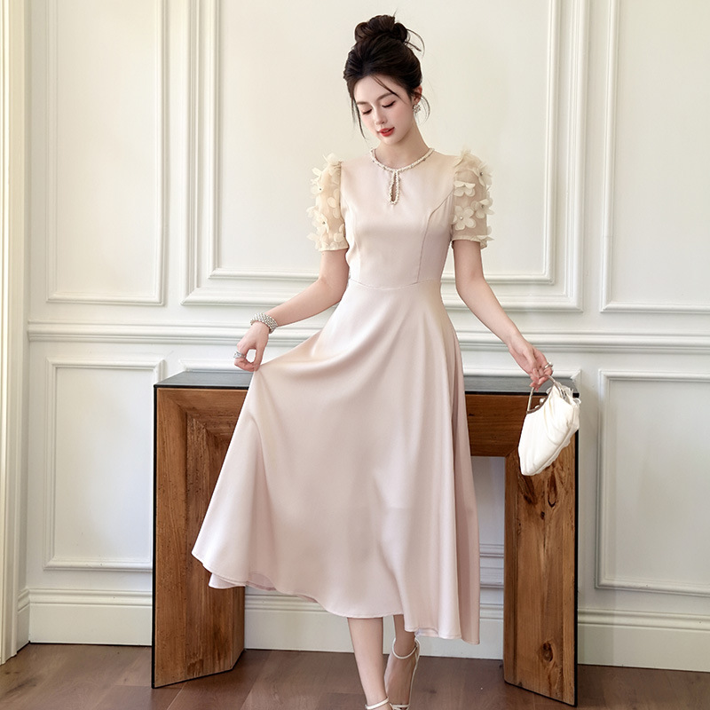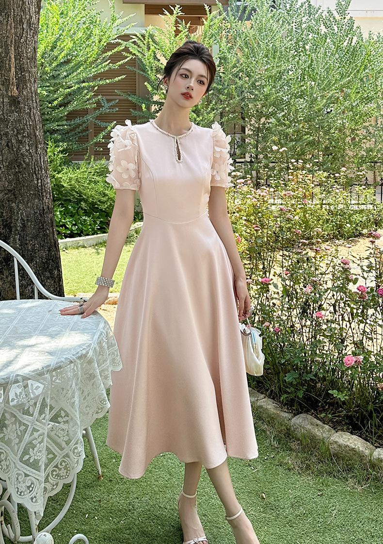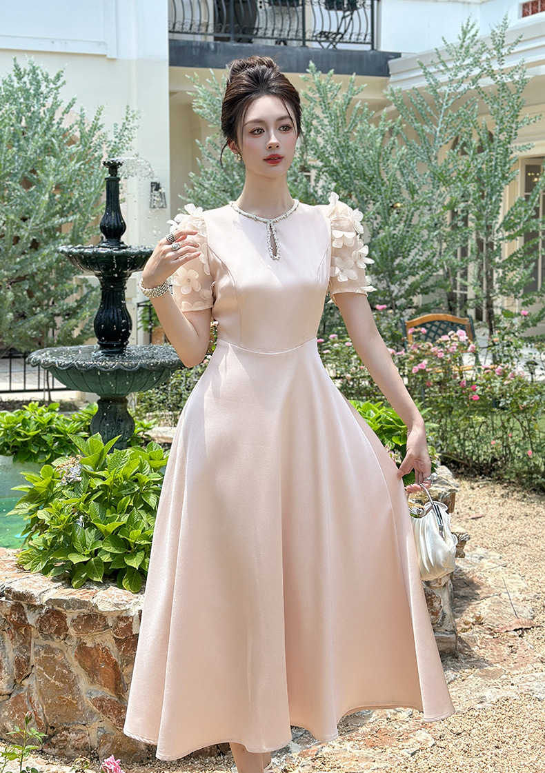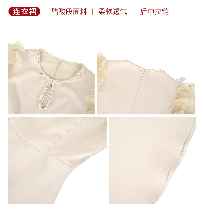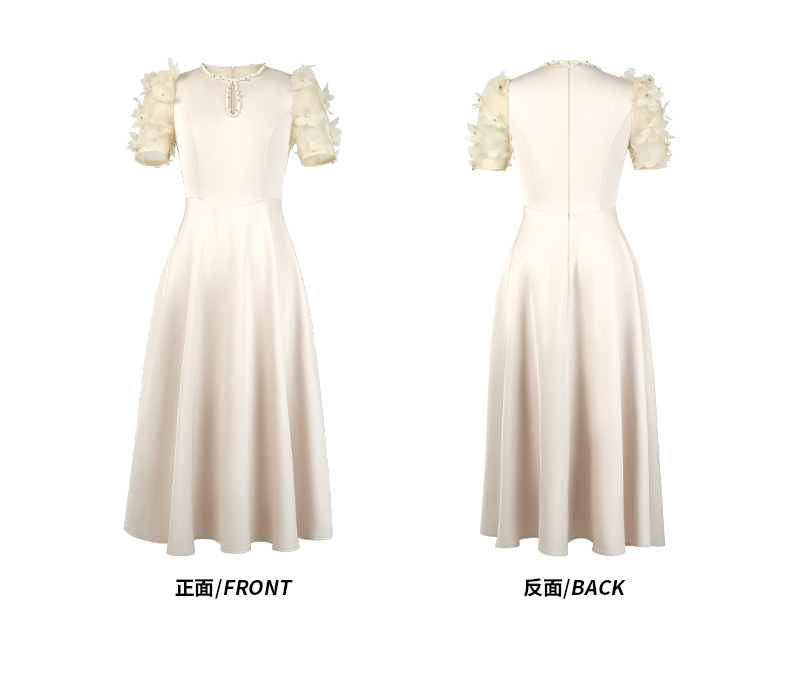 C-4278# 2025夏季新款法式圆领镂空花瓣袖修身收腰蓬蓬大摆连衣裙女51351