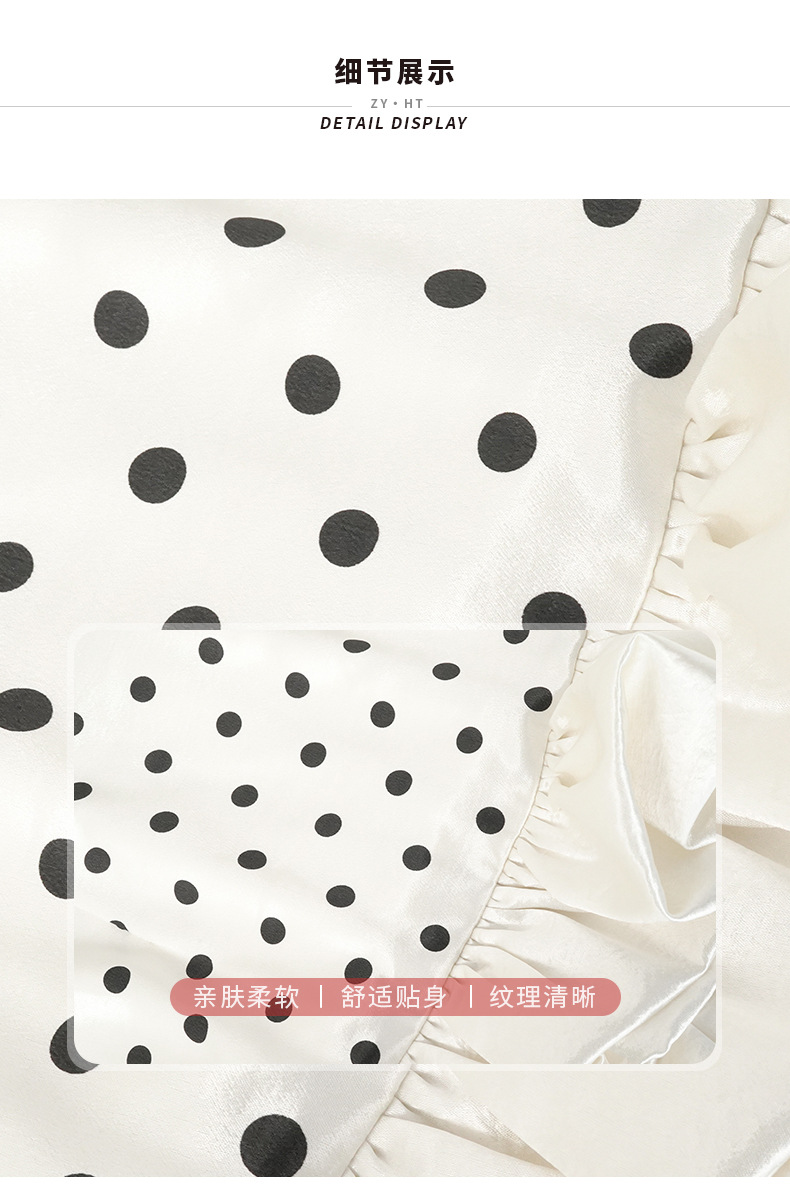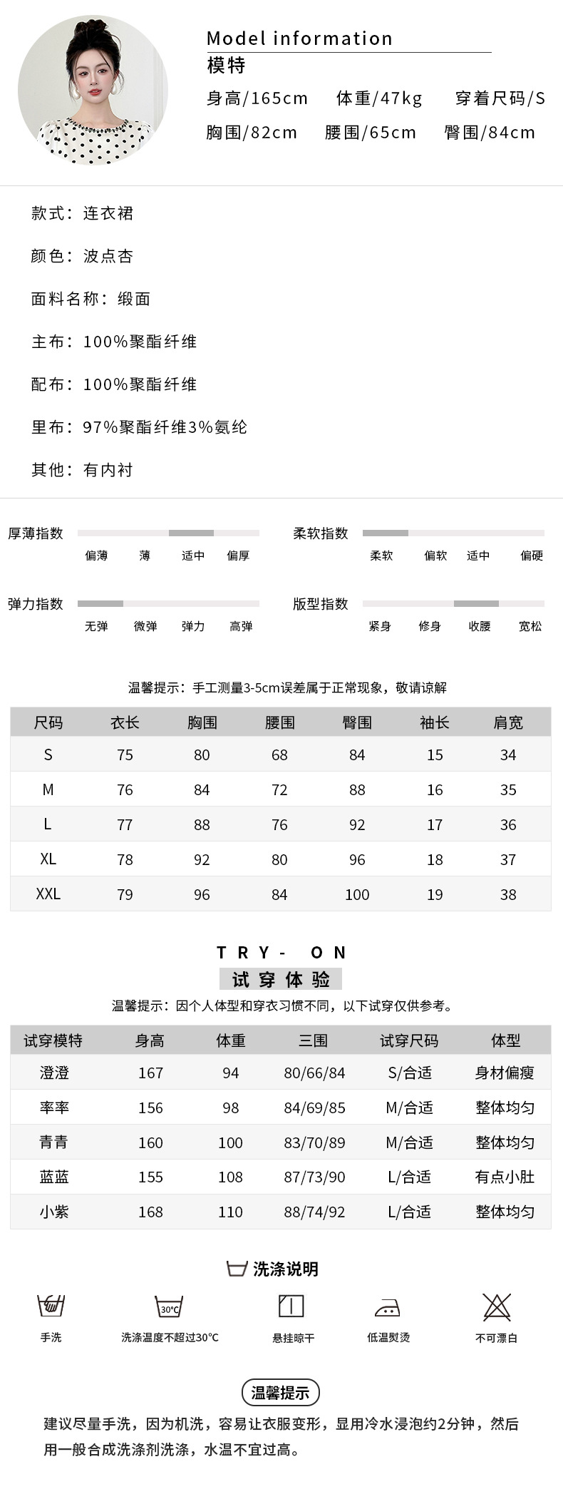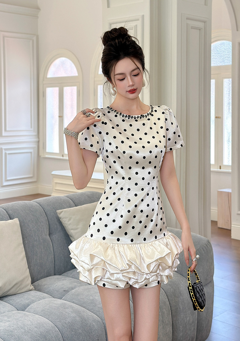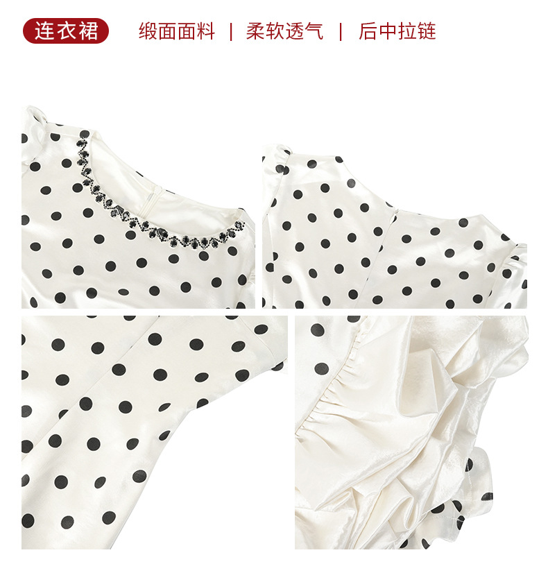 C-4290# 2025夏季新款女装复古气质镶钻圆领设计感荷叶边波点连衣裙65387